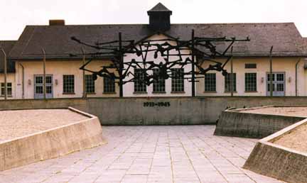 This Memorial, with its sculpture representingthe horror of the emaciated bodies of the dead victims of theNazis at the Dachau Concentration Camp, was unveiled in 1968 infront of the center portion of the operations building, now theMuseum. The Museum photo exhibit shows a picture of this building,when the camp was in operation, with a Nazi slogan painted onthe roof which reads "There is one way to freedom. Its milestonesare: obedience, zeal, honesty, order, cleanliness, temperance,truth, sense of sacrifice and love for the Fatherland." Thesame slogan decorated buildings at other sites as they were addedto the Nazi concentration camp system.