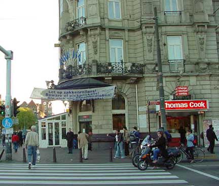 Banners over the streets warn tourists to "Beware of pick pockets"