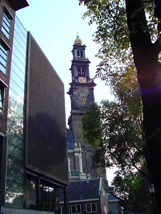 church tower. On the left is the modern building at 267 Prinsengracht;