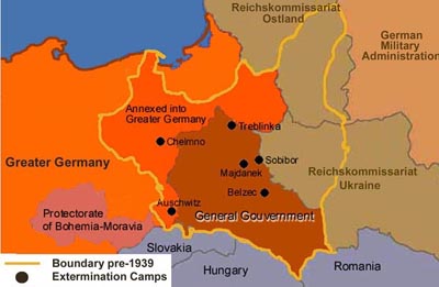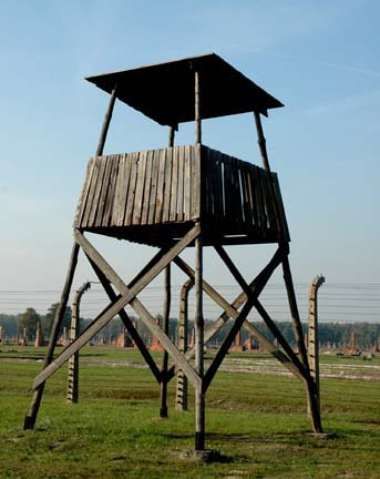 Auschwitz is a name that was virtually unknown before 1989. Now it has become a symbol for The Holocaust -- the Nazi plan to systematically exterminate all the Jews of Europe, which resulted in the deaths of 6 million Jews. Auschwitz is the site of the greatest mass murder of all time, the most infamous Nazi death factory, the primary killing site where the "Final Solution to the Jewish Question" was carried out by means of homicidal gas chambers, the most heinous place on earth. An estimated 1.3 million victims arrived at Auschwitz between June 1940 and January 1945 and 1.1 million of them died there, including over 900,000 Jews. Today there are around one and a half million visitors who tour Auschwitz-Birkenau each year. The world first learned that the Jews were being gassed at Auschwitz when resistance fighters in the Polish Underground passed this information on to the Polish government in exile in Great Britain. On June 25, 1942, The Telegraph, a British newspaper, ran a story about the mass murder of Jews in gas chambers at Auschwitz. The headline read "Germans murder 700,000 Jews in Poland." According to this first report, which was also broadcast on the radio by the British BBC in June 1942, a thousand Jews a day were being gassed. ![]() Auschwitz is more than one place: it is a small town in what is now Poland, but the name Auschwitz also refers to three separate prison camps called Auschwitz I, Auschwitz II and Auschwitz III, all of which were located just outside the town. The Auschwitz complex was an extermination camp, a labor camp, a transit camp and a concentration camp, all rolled into one. Auschwitz I was the main camp; it was a Class I concentration camp, which was opened in June 1940 in the barracks of a former Polish Army garrison. The first prisoners were mostly non-Jewish Polish political prisoners, but a few Jews were also imprisoned there. Auschwitz II was the death camp where over a million prisoners, mainly Jews, were killed, mostly in gas chambers; today, it is the world's largest Jewish graveyard, the place where the ashes of innocent victims were scattered over the fields, thrown into the rivers, or dumped into several small ponds sixty five years ago. Auschwitz III was a work camp where prisoners worked in the factories of the I.G. Farben company, along side civilian workers who were not prisoners. The town of Auschwitz, which was originally founded by Germans in 1270, is now known by its Polish name, Oswiecim, and the three camps are known as Auschwitz, Birkenau, and Monowitz. The Polish name for Birkenau is Brzezinka and Monowitz is called Monowice by the Poles. In June 2007, the United Nations officially changed the collective name of the three Auschwitz camps to Auschwitz-Birkenau, German Nazi Concentration and Extermination Camp (1940-1945). This change was made at the request of the government of Poland so that people will know that Poland had nothing to do with setting up the camps or running them. The size of the Auschwitz "Zone of Interest" was 40 square kilometers. There was a security zone, consisting of 5,000 acres of potential farmland, which Reichsführer-SS Heinrich Himmler, the head of the SS and all the concentration camps, eventually turned into a huge farm where 10,000 inmates, mostly women, were put to work. This was an agricultural experiment station for the benefit of the German farmers who were brought to the region to settle on farms that were taken away from the Polish inhabitants. Himmler, who is sometimes dismissed as a "chicken farmer" had a degree in Agriculture and Rudolf Hoess, the first Commandant of Auschwitz, was previously a farmer. The photo at the top of the page was taken on May 26, 1944 when Hungarian Jews were brought to the Auschwitz II extermination camp, also known as Birkenau. In the photo, the prisoners in striped uniforms, wearing white scarves, were with the Kanada Kommando, which was in charge of collecting the luggage from the incoming trains and taking it to the clothing warehouses. The location of the clothing warehouses was called Canada, or Kanada in German, because of the great wealth to be found there, including fur coats, diamonds and even pots and pans and canned food that had been confiscated from the luggage of the Jews. Across the road from Canada at the Birkenau camp was the Sauna building where the clothing was disinfected in steam chambers. There was also a shower room in the Sauna building. In the photo above, you can see Crematorium II with its tall chimney on the right side in the background. Up to 12,000 Jews per day were murdered upon arrival in the gas chambers at Birkenau and their bodies were burned in the ovens in the crematoria. According to Robert Jan van Pelt, a noted Holocaust historian, there were 500,000 Jews gassed in the underground gas chamber in Crematorium II, called Krema II by the Germans. The total number of Jews gassed during the Holocaust, as stated in a display at the Wannsee Museum in Berlin, is 3,652,000. This incudes the Jews who were gassed at Chelmno, Treblinka, Belzec, Sobibor and Majdanek, as well as Auschwitz-Birkenau. Note the absence of German guards with guns or dogs in the photo above; at this point, the new prisoners did not yet know what their fate would be. Note that there is no smoke coming out of the chimneys of the crematoria. In the center background of the photo, the concrete posts for the barbed wire fence around the barracks can be seen, but notice that there were no guard towers along the whole length of the main camp road. Guard towers have since been added. On July 2, 1947, what is left of the Auschwitz camps became the Auschwitz Museum, by an official decree which stated: "...on the site of the former Nazi concentration camp, a Monument of the Martyrdom of the Polish Nation and of Other Nations is to be erected for all times to come." Note that there was no mention of the Jews in the decree. Poland was, at that time, a Communist country under t