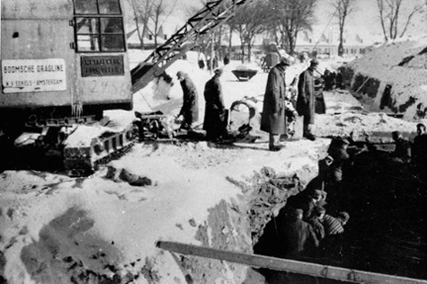 at Nuremberg: In 1943, the construction of four new brick buildings, called Krema II, Krema III, Krema IV and Krema V, was completed. The four new buildings all contained ovens for cremating the bodies, and homicidal gas chambers where the Jews were gassed with Zyklon-B. The numbering of the crematory buildings took into consideration that the first crematorium, in the main camp, was now called Krema I. There was a total of 500,000 Jews killed in all the Nazi concentration camps in 1943, and half of these deaths occurred in Auschwitz-Birkenau. The source for this information is a book entitled "Auschwitz, A New History," written by Laurence Rees, and published in 2005. The photo below shows elderly and disabled Jews, who have just arrived inside the Birkenau camp on a train and are waiting to be transported by trucks to the gas chamber. ![]() The photo above shows the original brick barracks in the former women's camp in 2005. This camp was first occupied by Soviet POWs. The first Birkenau prisoners had to tear down the brick houses in the Polish village of Brzezinka, which the Germans called Birkenau, and use the bricks to construct primitive barracks, built on the ground without foundations. Eventually, the houses in 6 more Polish villages were torn down in order to expand the Birkenau camp. Birkenau was built on marshy ground which had to be drained. The ground at Birkenau is so wet that there are spots at the western end that look like a bog garden with plants that grow only in wet places. The photo below shows prisoners digging a drainage ditch at the western end of the camp. This was part of Heinrich Himmler's ambitious plan to set up a huge farm at Auschwitz. ![]() According to the book entitled "Auschwitz, 1270 to the present" by Deborah Dwork and Robert Jan van Pelt, Heinrich Himmler got the idea of using the Auschwitz concentration camp to establish a large agricultural estate as early as November 1940 after Auschwitz Commandant Rudolf Hoess paid him a visit. "The two men began to plan the transformation of Auschwitz into an agricultural experiment station which would service the entire region." At that early date, the projected inmate population of Auschwitz was 10,000 and Himmler envisioned that most of them would work on the experimental farm, according to Dwork and van Pelt. "It was the metamorphosis of the camp into an agricultural estate worked by slaves that caught [Himmler's] fancy; it fit his fantasy of the German east, and he was enraptured by the vision of Auschwitz playing a central role in the reclamation of that area." The town of Auschwitz had originally been built by Germans and German farmers had formerly owned the land in the area, which Himmler wanted to reclaim for the Greater German Reich. According to the book by Dwork and Van Pelt, most of the slave labor on the Auschwitz experimental farm was done by women. The following quote is from "Auschwitz, 1270 to the present": His [Himmler's] bucolic fantasy engendered a brutality that exceeded the conditions in the sand and gravel pit industrial work assigned to men. The women simply had no machinery of any kind to help them. It was lethal work. Many died, and nearly no one survived without permanent injury. It was too great an assault for anyone to sustain, and it is possible that one day early in October 1942, women slave laborers at the agricultural farm in the Auschwitz subcamp of Budy tried to break out. German women kapos killed the approximately ninety French Jews with poles and axes, claiming to suppress an uprising. Not one of the prisoners survived that day. According to a book entitled "Auschwitz," which I purchased in 1998 from the museum at Auschwitz I: "Increasing the capacity of Auschwitz to supply slave labour was of prime importance to the Nazis; from the moment the camp was established, prisoners were employed in expanding it." When the camp was abandoned in January 1945, another section that would provide housing for 50,000 more prisoners was partially completed. The new section, called Mexico, is shown on the right side of the large map on this page. Birkenau was by far the largest camp in the Nazi concentration camp system, and the overwhelming majority of the prisoners were Jews who did not work. There were no factories at Birkenau; the whole camp was intended to be a death factory for gassing the Jews. ![]() According to a German document dated 28 June 1943, issued by the Central Management of the Building section of the Waffen SS and Police, the four new crematoria at Birkenau had a combined capacity of 4,416 corpses in a 24-hour period. When problems with the ovens in Krema IV and Krema V developed, bodies were burned in pits on the north side of Krema V, as shown in secret photos taken in the camp. When the former Commandant, Rudolf Hoess, returned to Birkenau in May 1944, the first thing he did was to order the construction of a railroad line that went through the Birkenau gate and continued on into the camp, right up to the gas chambers in Krema II and Krema III at the western end of the main camp road. Between September 1943 and May 1944, thousands of Jewish prisoners were sent from the Theresienstadt Ghetto to the Birkenau camp. Theresienstadt was the so-called "Paradise Ghetto" in what is now the Czech Republic; this was where the Nazis allowed a Red Cross inspection after first cleaning up the camp to impress the delegates. The Czech prisoners from Theresienstadt were housed inside Birkenau in a special "Family Camp," surrounded by electrified barbed wire, where men, women and children were allowed to live in separate barracks, but inside the same enclosure. In two successive actions, according to information given by the Auschwitz Museum, the Jews in the Family Camp were gassed on March 3, 1944 and again on July 11 and 12, 1944. According to Ruth Elias, a prisoner in the family camp who wrote a book entitled "Triumph of Hope," the prisoners in the Family Camp were instructed to s