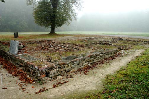 The ruins show bricks set directly on