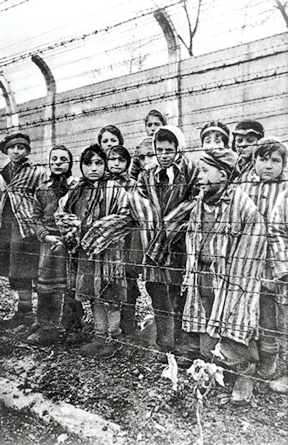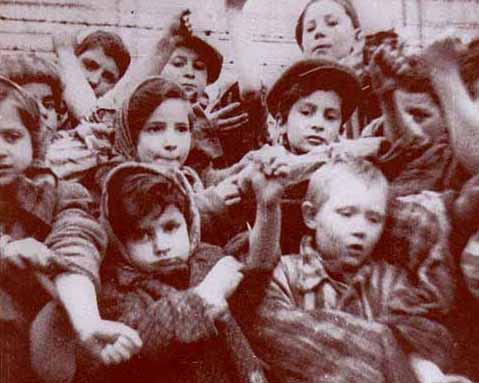 The photograph above shows some of the 5,800 Birkenau survivors, most of whom look like well-fed Polish peasants, walking out of the camp shortly after Auschwitz-Birkenau was liberated by Soviet troops on January 27, 1945. In the background you can see the wooden barracks buildings, with windows under the roof, and the posts of the barbed wire fence. These survivors are walking along the interior camp road that bisects the Birkenau camp from north to south, connecting the women's camp with the new section of Birkenau, known as "Mexico." This is a still picture taken from the Soviet movie which is shown at the beginning of the tour at the Auschwitz Museum. The tall, skinny guy wearing an arm band is Dr. Otto Wolken, a medical doctor in the Birkenau Quarantine camp, who stayed behind to help his fellow prisoners when the Birkenau camp was evacuated. He was the first witness to testify at the Auschwitz Trial, held by the German government in Frankfurt between 1963 and 1965. ![]() The young woman in the center of the photo above is a Communist political prisoner named Olga. This is a still shot from the Soviet movie shown at the Auschwitz Museum. Note the badge worn by the elderly woman, which indicates that she is a political prisoner. The photo below shows some of the small children walking out of the Birkenau camp after they were liberated. ![]() Note the little girl on the far left in the front row in the photo above. She is on the left in the front row of the photo below, which is also a still shot taken from the documentary film made by the Soviet Union in February, after they had liberated the camp. It shows a few of the 611 children at Birkenau who greeted the liberators. They are holding out their arms to show their tattoos. Notice that the boy in the front is wearing a prison uniform which looks as though it would fit an adult. This same film clip is included in a film entitled "The Nazis: Nazi War Crimes," produced by the Soviet Union in which it was claimed that this same film clip was shot by the Nazis just before these children were killed at Babi Yar, a ravine near Kiev in the Ukraine. ![]()