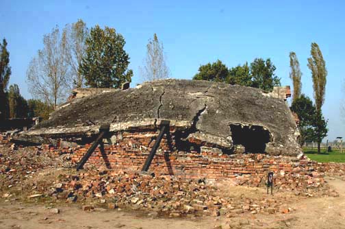 Supports hold up the roof of Krema II which was blown up in January 1945