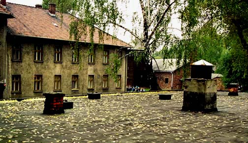 the Krema I gas chamber and crematorium building in the Auschwitz