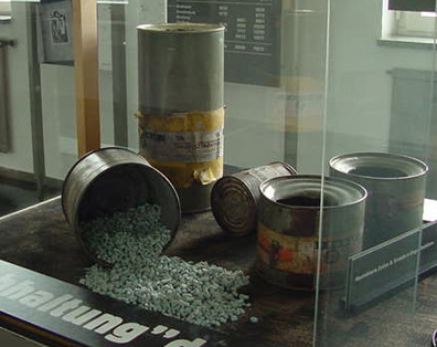 There is a similar display of Zyklon-B cans in the Auschwitz