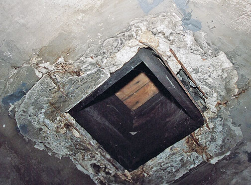 A hole on the left side of the ceiling