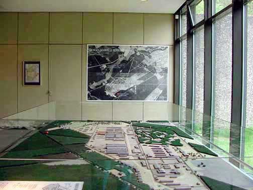 Bergen-Belsen Museum![]() A Documentation Center and an exhibition on the history of the camp was first opened at Bergen-Belsen in 1966. A new permanent exhibition was opened in April 1990. It contained photos taken at Bergen-Belsen, along with a history of the Nazi persecution and systematic extermination of the Jews. The photo above shows the Museum as it looked in 2002. On Sunday, October 28, 2007 a new museum was opened at Bergen-Belsen. It is a concrete structure that cost 13 million euro to build. The following quote about the new museum is from a BBC news article: