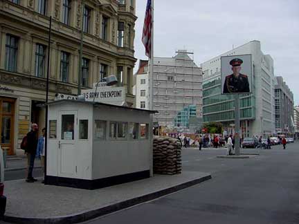 Checkpoint Charlie in Berlin![]() This was the guard station at the entrance to the American zone when Berlin was divided by the Berlin wall. Now it is a favorite place for tourists to take photographs. ![]() ![]() Photo of Russian Soldier at the entrance to former Russian side of Berlin. American checkpoint is in the foreground. The Russian checkpoint station has not been preserved. ![]() Souvenir stands on the former Russian side of Checkpoint Charlie. On the American side, there is a Checkpoint Charlie Museum and several souvenir shops, selling postcards and T shirts. ![]() "Authentic" Russian Army caps for sale on the Russian side, where one can also buy a"genuine" piece of the Berlin wall that was torn down. Back to Berlin Index PageHome
