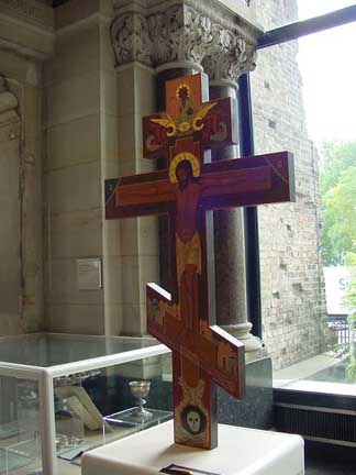 Kaiser Wilhelm Memorial Church in Berlin![]() Kaiser Wilhelm Church was built at the end of the 19th century and destroyed by British bombs in November 1943. Part of the ruins have been preserved as a memorial. A new modern church and a tower have been built beside it. ![]() ![]() The next two photos below show the ceiling of the ruined church. ![]() ![]() Back to Berlin Index PageHome |