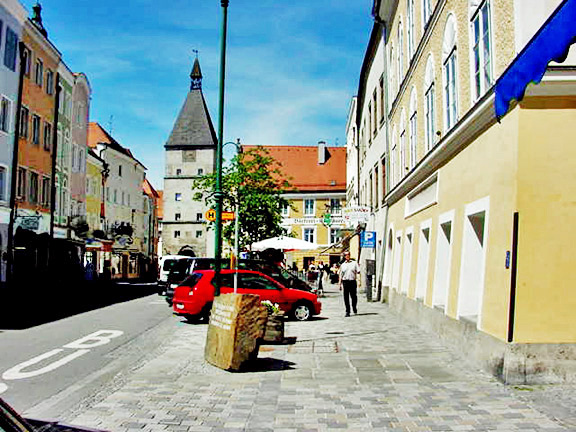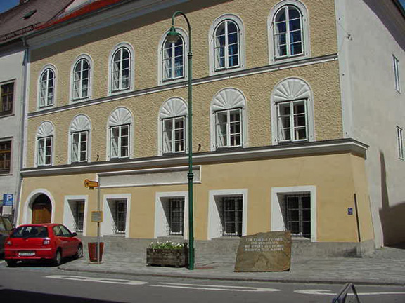 Braunau am Inn, Hitler's birthplace![]() Braunau am Inn is a charming town in Austria, with a population of about 17,500 people, on the south bank of the Inn river which separates Austria and Germany. The photo above shows Salzburger Vorstadt, the street where Adolf Hitler was born on April 20, 1889. The street was renamed Adolf-Hitler-Strasse after the Anschluss of Germany and Austria on March 12, 1938. The house where Hitler was born is on the right. ![]() The photo above shows the yellow three-story building in Braunau am Inn where Hitler was born in the former Gasthof zum Pommer or Gasthof des Josef Pommer. The original address of the building was Salzburger Vorstadt 219 when Adolf Hitler was born here at 6:30 p.m. on April 20, 1889, Easter Sunday. The house where Hitler was born in Braunau am Inn is unmarked, except for a large stone of Mauthausen granite which was placed on the corner in 1989, the 100th anniversary of Hitler's birth. The English translation of the words on the stone are: "For peace, freedom and democracy, never again Fascism, millions of dead admonish." ![]() The stone, which is in front of Hitler's birthplace is from the quarry at the Mauthausen concentration camp. Hitler wanted to use the Mauthausen granite for new buildings in Linz, where he planned to retire. ![]() ![]() In the center of the iron grillwork over the door into Hitler's birthplace, there are the initials MB, which allegedly stand for Martin Bormann, Hitler's secretary and right-hand man. ContinueHome |