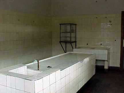 Medical Experiments at BuchenwaldAn annex built onto the crematorium housed the pathology department where autopsies were done. According to the camp guidebook, "Except for those killed during mass executions, all dead bodies were first sent to the pathology department. Gold teeth were pulled out here, various medical specimens were prepared and even artifacts were made which consisted of tanned human skin and which were needed to satisfy the personal demands of the SS." A sign in the pathology lab says that autopsies were performed to establish a fake cause of death for prisoners who were actually murdered. The photo above shows the table where autopsies were performed on dead prisoners. The camp doctors were conducting medical experiments on prisoners in an attempt to develop a vaccine for typhoid fever, according to the camp guidebook. The German term for typhus is "spotted fever" which Americans translate as typhoid fever, although the German term refers to typhus. It was typhus which was epidemic in all the German camps, beginning in December 1944. General George S. Patton mentioned in his autobiography that Buchenwald had "a number of allegedly eminent physicians" who were performing "some very abominable experiments on their fellow inmates." The only medical experiment that Patton sited as an example was one in which 800 patients in the camp were "inoculated with anti-typhus vaccine and then inoculated with the typhus bug." The vaccine was a failure, and 700 out of the 800 died of typhus. On the same page, he wrote, "One of the interesting things to be seen in flying over Germany is the large number of swimming pools. Practically every little town has one. I think it must have been in line with their health movement." According to the March 1945 issue of the Red Cross monthly bulletin, American soldiers held as POWs in German camps were given typhus vaccine, which was delivered by the Red Cross and distributed by the Germans. Since this vaccine was only given to Americans, the Germans were working to develop their own vaccine for the rest of the prisoners and for the German Army. ![]() Execution of Soviet POWsBuchenwald AtrocitiesExecution RoomBack to Buchenwald index pageHome |