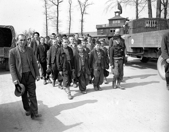 Survivors of Buchenwald Concentration Camp![]() The famous photo above was taken inside Buchenwald Barrack #56 by Private H. Miller of the Civil Affairs Branch of the U. S. Army Signal Corps on April 16, 1945, five days after the Buchenwald camp was liberated by the Sixth Armored Division of the US Third Army on April 11, 1945. This photo was published by the New York Times on May 6, 1945 with the caption "Crowded Bunks in the Prison Camp at Buchenwald." Block #56 was an adult barrack in the "Small Camp" at Buchenwald. For identification of the prisoners, see this photo on Flickr. Miklos Grüner (Nikolaus Gruner) has identified himself as the 16-year-old boy shown in the bottom left-hand corner of the photo above; although Grüner says he was suffering from tuberculosis and near death, he was not in the hospital barrack for TB patients. In May 1944, at the age of 15, Grüner was sent to Auschwitz-Birkenau where he was registered and then transferred to the Monowitz camp to work in the I.G. Farben factories. When Auschwitz-Birkenau was evacuated on January 18, 1945, Grüner was taken to Buchenwald. Elie Wiesel has identified himself as the prisoner at the end of the second tier of bunks from the bottom. His is the last full face that you see, encircled in red, to the left of a post in the photo below. Born on September 30, 1928, Elie was 15 and a half when he was sent on a transport from Hungary to Auschwitz-Birkenau in May 1944, and then transferred to Monowitz to work. ![]() The photo below is a close-up of the right side of the photo above. The face of 16-year-old Elie Wiesel can be seen in the bottom row to the left of the post in the center of the photo. ![]() ![]() The photo above shows a group of orphan boys walking out of the Buchenwald camp on April 27, 1945. In his book entitled "Night," Elie wrote that he became sick three days after the camp was liberated on April 11, 1945 and was in the hospital for two weeks. In a book entitled "The Children of Buchenwald" by Judith Hemmendinger and Robert Krell, there are the stories of 31 of the orphan boys at Buchenwald, including the story of Elie Wiesel in Chapter 11. On page 54 of the book is this footnote: Romek and Abram in Block 8 were unaware that Block 66 held the children at liberation. They thought themselves the only two children in Buchenwald. The authors also mention on page 113 that Block 66 was the barrack for the orphan boys at Buchenwald. On this web site, Jewish professor Ken Walzer is quoted as follows, regarding the orphans at Buchenwald: Among the older boys was Eliezer Wiesel from Sighet, Rumania, who was protected in block 66 with hundreds of others. According to a news article published in October 2008 on the Sun Times News Group web site, Paul Argiewicz has identified himself as the 16-year-old prisoner in the third tier of bunk beds, to the left of a post in the center of the photo shown below. ![]() According to the Sun Times article, written by Wynn Koebel Foster, Argiewicz was one of only 300,000 survivors out of a population of 3,300,000 Polish Jews. Like Elie Wiesel, Argiewicz was a teenager who was brought from Auschwitz-Birkenau to Buchenwald when the camp closed in January 1945, and both were orphans in the Buchenwald "Small Camp." Argiewicz had lied about his age during the selection at Birkenau, claiming that he was 18 years old and experienced as an electrician so that he would be selected for work, when he was actually under 15 years of age and was destined to die in the gas chamber. Argiewicz told Foster of the Sun Times that he had the added advantage of being able to speak fluent German "with a Bavarian accent." (Germans in Bavaria speak a dialect called Bayerisch.) Shortly after the war ended, a traveling exhibit of huge photographs from the Nazi concentration camps, including Buchenwald, was first shown in St. Louis, MO and then taken to Washington, DC. The photograph below shows visitors looking at the most famous photo taken at Buchenwald. ![]() ContinueBuchenwald OrphansOld photos of BuchenwaldCongressmen & ReportersEdward R. Murrow ReportLiberation ClaimsLiberation DayFirst liberators arriveGerman civilians tour BuchenwaldExhibits put up by prisonersMore exhibits at BuchenwaldBack to Buchenwald liberationHomeThis page was last updated on November 15, 2009 |