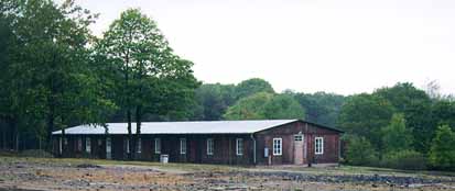 In his introductory remarks, Murrow said that as he approached the camp, he saw about 100 men dressed in civilian clothes with rifles. There were a few shots and when he stopped to inquire, he was told that the prisoners "had some SS men cornered." Later in the broadcast, he mentioned that French prisoners had shot 3 of the SS soldiers who had been guarding the camp, and had taken one prisoner. ![]() The most important part of the broadcast began as follows: And now, let me tell this in the first person, for I was the least important person there, as you shall hear. There surged around me an evil-smelling stink, men and boys reached out to touch me. They were in rags and the remnants of uniforms. Death already had marked many of them, but they were smiling with their eyes. I looked out over the mass of men to the green fields beyond, where well-fed Germans were ploughing.... Contrary to Murrow's description of the prisoners, photographs of the Buchenwald concentration camp, taken after the liberation, show that the prisoners were not dressed in rags. Buchenwald was completely surrounded by a dense forest, just as it is today, and the green fields could not be seen from the camp. The name Buchenwald means "beech tree forest." The concentration camp was in a clearing on the northern slope of a hill and the surrounding fields were not visible from any spot in the camp. Today, one can see the fields from the top of the hill where the Memorial to the Anti-Fascist Heroes stands, but not from the former camp. At the time that Edward R. Murrow was there, the top of the hill had a German monument called the Bismarck Tower. ![]() The map above shows the location of the Buchenwald concentration camp on the northern slope of the hill called the Ettersberg. The gate house of the camp is shown on the left side of the map near the top. At the top of the map is the Ettersburg castle. On the southwestern slope of the hill, about a mile from the camp, is the highest point of the Ettersberg where the tower that is part of the Buchenwald Monument is now located. On the map above, the location of the tower is indicated by a small picture of a tower. The green area on the map indicates the forest which surrounded the camp, blocking the view of the surrounding fields. The photo below shows where the barracks once stood on the northern slope of a hill. In the background are thick trees surrounding the camp. The second photo below shows more trees at the edge of the camp. It was very cold in Germany in the Spring of 1945; near Dachau there was snow on the ground as late as May 2, 1945. Even if Murrow could have seen the fields from the camp, he probably would not have seen anyone plowing. His misleading opening remarks were intended to paint a picture of the well-fed German people living life as usual and suffering no hardship at all during the last days of their country's destruction, while the political prisoners at Buchenwald were dressed in rags and starving to death. ![]() A German prisoner, who told Murrow that he had been in Buchenwald for 10 years, offered to show him around the camp. Buchenwald had opened in 1937 and the camp had been in existence for only 8 years. Murrow's broadcast from Buchenwald continued with these words: I asked to see one of the barracks. It happened to be occupied by Czechoslovakians. When I entered, men crowded around, tried to lift me to their shoulders. They were too weak. Many of them could not get out of bed. I was told that this building had once stabled 80 horses. There were 1200 men in it, five to a bunk. The stink was beyond all description. They called the doctor. We inspected his records. There were only names in the little black book - nothing more - nothing about who had been where, what he had done or hoped. Behind the names of those who had died, there was a cross. I counted them. They totaled 242 - 242 out of 1200, in one month. As I walked down to the end of the barracks, there was applause from the men too weak to get out of bed. It sounded like the hand clapping of babies. The doctor's name was Paul Heller. He had been there since 1938. As we walked out into the courtyard, a man fell dead. Two others, they must have been over 60, were crawling toward the latrine. I saw it, but will not describe it. The barrack that Murrow visited at Buchenwald must have been at the bottom of the slope in the "Small Camp" where prefabricated horse barns had been set up for the prisoners who were being held in quarantine because they were sick. The barracks in the rest of the camp were not horse barns; they looked liked the reconstructed barrack building shown in the photo below. There were 15 two-story brick barrack buildings. The barracks at Buchenwald had flush toilets; there were no open latrines. In his introductory remarks, Murrow mentioned that the Buchenwald camp had been "built to last," an obvious reference to the brick buildings. ![]() Murrow continued his broadcast with a description of the children: In another part of the camp they showed me the children, hundreds of them. Some were only 6 years old. One rolled up his sleeves, showed me his number. It was tattooed on his arm. B-6030, it was. The others showed me their numbers. They will carry them till they die. An elderly man standing beside me said: "The children- enemies of the state!" I could see their ribs through their thin shirts. The old man said, "I am Professor