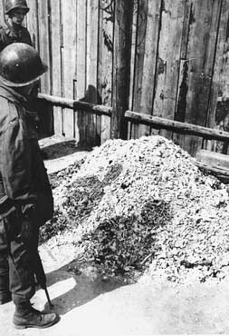 First American liberators arrive at BuchenwaldAmong the first American soldiers to enter the Buchenwald concentration camp was First Lieutenant Edward A. Tenenbaum, who spoke "American German," according to The Buchenwald Report. He arrived on April 11th, along with a civilian named Egon W. Fleck, at 5:30 p.m. in an American jeep. The two men stayed in Buchenwald that night in Block 50, the medical building. Fleck and Tenenbaum wrote a detailed report on what their lengthy investigation of the camp had revealed. Alfred Toombs, who was Tenenbaum's commanding officer, wrote a preface to the report, in which he mentioned how "the prisoners themselves organized a deadly terror within the Nazi terror." The following quote from Fleck and Tenenbaum's report describes the power exercised by the German Communist prisoners at Buchenwald: The trusties, who in time became almost exclusively Communist Germans, had the power of life and death over all other inmates. They could sentence a man or a group to almost certain death ... The Communist trusties were directly responsible for a large part of the brutalities at Buchenwald. According to The Buchenwald Report, the bible of the camp written by a special intelligence team of the American Army, led by Albert G. Rosenberg, it was not until Friday the 13th that the rest of Patton's troops arrived, accompanied by Generals Eisenhower, Bradley and Patton. Although the Buchenwald Report says that the three top American generals saw the camp on April 13, Patton himself wrote that it was not until April 14, 1945 that he heard some of the gory details about Buchenwald from General Gay and Colonels Pfann and Codman, who had visited it. Patton wrote in his book that he immediately called General Eisenhower, even before seeing the camp himself, and suggested that he send photographers and members of the press "to get the horrid details." General Dwight D. Eisenhower and General Omar Bradley had visited the Ohrdruf sub-camp of Buchenwald, along with General Patton, on April 12, 1945 but neither Eisenhower nor Bradley ever bothered to visit the Buchenwald main camp. General Patton's impression of the camp being controlled by the inmates was confirmed by Colonel Donald B. Robinson, chief historian of the American military occupation in Germany, who wrote an article for an American magazine after the war about the report of Fleck and Tenenbaum: "It appeared that the prisoners who agreed with the Communists ate; those who didn't starved to death." Other accounts of the liberation of Buchenwald vary. Some of the American soldiers wrote that the ovens were still in operation and that they had to shut them down in order to stop the burning of live prisoners; others wrote that the ovens were cold because there was no fuel and dead bodies were piled up. The American soldier who took the first photo below wrote on the back of the print "some were alive yet." Many American soldiers would later report that they were overwhelmed by the sight of the Buchenwald camp: this was a death factory where the German barbarians were systematically killing innocent human beings by hanging them from meat hooks on the wall, and even burning the victims in brick ovens while they were still alive. ![]() The Germans didn't even have the common decency to clothe the naked bodies, rotting in the sun with their genitals exposed, nor to give these innocent victims a decent burial like human beings. As General Eisenhower later said, if America's soldiers didn't know before what they were fighting for, at least now they knew what they were fighting against. The American soldiers felt very proud that they had arrived in time to stop this unbelievable cruelty before the rest of the prisoners in the camp could be fed into the Nazi killing machine. Even better, they had stopped the ugly bigotry and racism of the Germans before American citizens could be subjected to a similar fate. ![]() ![]() Three days later, the 120th Evacuation Hospital arrived in Weimar with a staff of 273 service personnel to take care of 3,000 sick prisoners at Buchenwald; a hospital was set up in the barracks of the SS soldiers who had been stationed at Buchenwald. The staff stayed in a beautiful castle on the Ettersberg, which had formerly been the summer home of German royalty. A path through the woods connected the castle to the concentration camp. One of the soldiers with this unit was Tech. Sgt. Warren E. Priest from Haverhill, MA. In October 2007, Warren Priest told his story to Mike Pride, the editor of the Concord Monitor. The following quote from Warren Priest was included in an article published by the Concord Monitor on October 25, 2007: We left this lovely summer home and walked up a pathway through the woods. It was spring, and the leaves were just emerging. We saw all the loveliness and color of the season. We smelled Buchenwald long before we saw it. That whole area was overwhelmingly and intrusively affected by the odor of death in the camp. You couldn't escape it. Reaching near the top, I suddenly encountered human forms. We had been trained not to fraternize, so I didn't say anything. I held my carbine. They moved to the side of the pathway and got down on their knees and put their hands together prayerfully and looked up and smiled. It was one of those moments when expression was all nonverbal. Buchenwald was a work camp, not a death camp, although plenty had been killed there. Close by was a Karl Zeiss factory, where prisoners worked. They specialized in the assembly of optical instruments - binoculars and cameras. We got quite a few of the things we needed from a supply train that the American troops had captured. We stole, if you will, things from the factory. I had two or three pairs of binoculars and a 35-millimeter camera. The men of the 120th Evacuation Hospital did everything they could to save the victims of the Nazis at Buchenwald, even donating their own blood, according to Warren Priest. I was stru