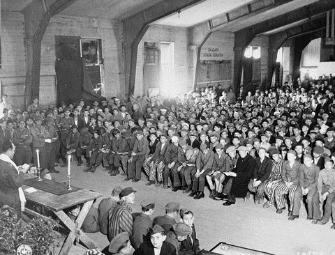 Survivors of Buchenwald Concentration CampThe photo below, taken by Margaret Burke-White after the liberation of Buchenwald, shows a group of unsmiling male inmates, who were privileged Communist political prisoners, lined up in front of a barbed wire fence in the camp. ![]() In the center of the photo above is a dapper-looking gentleman with a neatly trimmed moustache and short beard, wearing freshly-laundered striped prison pants, and what looks like a new wool overcoat. His expression is one of disdain, as though he can't wait for the picture taking to end, and the cigarettes and chocolate bars to be handed out. The rest of the prisoners in the picture, all of them clean shaven, including one elderly gentleman leaning on a cane, are looking at the camera as though they are puzzled by the sight of this self-assured woman, dressed in full Army regalia, who is standing behind a camera set upon a tripod, holding a flash fill-light. Margaret Bourke-White, America's most famous photographer, had been traveling with the Third Army and had accompanied the American soldiers when they crossed the Rhine. She arrived at Buchenwald on April 15, 1945, along with General George S. Patton. ![]() The photo below shows Buchenwald survivors who seem to be in good health in spite of the horrible conditions in the camp. The original caption on this photo read "Photograph of a barracks in the German prison camp at Weimar, Germany, shows the crowded living conditons of the prisoners. The building, which would normally house 50 people, was occupied by about 350. The camp was taken by troops of the U.S. Third Army." This photo, which is in the public domain, is kept at the National Archives and Records Administration in College Park, Maryland. ![]() Buchenwald was a Class II concentration camp for political prisoners, who were mainly Communists. It was not a death camp where Jews were brought to be systematically killed. Buchenwald was for hard-core anti-Fascists who were considered more dangerous to the German state than the political prisoners sent to Dachau or Sachsenhausen, which were both designated as Class I camps. ![]() The quarantine camp, known as the "Small Camp" was a different story. This isolated camp at the bottom of the hill held the sick and the dying, who were mainly the Jewish and Romany prisoners who had recently arrived after being evacuated from the camps in the east. ![]() In the first days after the liberation of Buchenwald, the political prisoners who had been freed by the Americans, hunted down 76 of the camp guards who had escaped into the surrounding woods, according to The Buchenwald Report. They were brought back to the camp and killed. According to Robert Abzug in his book "Inside the Vicious Heart," the inmates "killed almost eighty ex-guards and camp functionaries in the days following the liberation, sometimes with the aid and encouragement of Americans." In his book Abzug quotes one of the liberators, Fred Mercer: ... a German soldier attempted to surrender to the Americans, but was intercepted by a prisoner with a four-foot wood log: "He just stood there and beat him to death. He had to - of course, we didn't bother him." American newspaper reporter Marguerite Higgins wrote in her book "News is a Singular Thing," that 20 to 30 American soldiers took turns beating 6 young German guards to death at Buchenwald. Following the liberation of Buchenwald, the prisoners were moved to the SS barracks outside the camp. The opinion of the Americans, regarding the inmates, soon changed. Abzug wrote the following: The liberated prisoners themselves also bewildered innocent American onlookers. Despite what they knew about what their wards had undergone, some Americans never ceased to wonder why, even after food had been made readily abundant, the survivors pushed and shoved their way to the soup kettle or bread basket. Others were appalled to find some indifferent to nudity or personal cleanliness. Nor was it readily understood why many were slow to volunteer for work, even though it might help the condition of the camp. ![]() ![]() Buchenwald was not set up as a camp for Jews, but there were 4,000 Jews among the 21,000 prisoners there when the camp was liberated. They had been brought to Buchenwald after the death camps in the East were abandoned. On November 10, 1938, following the pogrom in Germany and Austria known as Kristallnacht, there were around 10,000 Jewish men brought to Buchenwald. They were released around two weeks later after promising to leave Germany or Austria within six months. General Patton at BuchenwaldBuchenwald OrphansOld photos of BuchenwaldCongressmen & ReportersEdward R. Murrow ReportLiberation ClaimsLiberation DayFirst liberators arriveGerman civilians tour BuchenwaldExhibits put up by prisonersMore exhibits at BuchenwaldBack to Buchenwald liberationHomeThis page was last updated on November 14, 2009 |