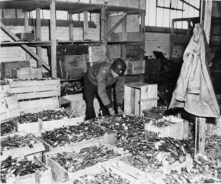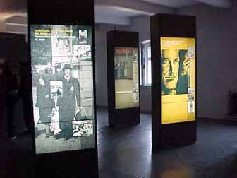 Buchenwald Concentration Camp MuseumThe storehouse building at the former Buchenwald concentration camp was turned into a museum about the camp by the former East German government in 1985. In 1995, after the fall of Communism, the original museum was redone. The photograph above shows the posters near the entrance at the start of the museum displays in 1999. The huge photograph on the display panel to the left in the photo above shows a well-dressed Jewish man and woman with a yellow star sewn to their clothing; the Nazis revived this Medieval custom as the first step in their persecution of the Jews. This photograph is a still picture from a movie taken when the Dutch Jews were rounded up and sent to the death camps in what is now Poland. Around 600 Dutch Resistance fighters were sent to Buchenwald during the German occupation of the Netherlands. The storehouse building in the Buchenwald camp, completed in 1939, which is now the museum, was originally where the prisoner's civilian clothing and personal effects were kept. Incoming inmates had to leave all their possessions behind in this building. ![]() When I visited in 1999, the Buchenwald museum exhibits were arranged in sections. The first section was entitled "...Right in the Midst of the German People." This section features information written on large posters in both German and English. In marked contrast to the museum at Dachau in the former West Germany, which told the story of the Nazi regime in an objective presentation in 1999, the Buchenwald museum still had the unmistakable biased viewpoint of the Communists in the former East Germany. The Dachau museum, which was set up in 1965, started with a lengthy display of the events leading up to the Third Reich, while the Buchenwald museum in 1999 glossed over the reasons for the Nazi rise to power. The 1965 Dachau museum had a vast display of photographs, but there were virtually none in the Buchenwald museum in 1999. Commandant Karl Koch established a photography department at Buchenwald, and the SS guards took numerous photographs of the camp including pictures of executions. However, most of them were destroyed when the building burned down during an Allied bombing raid on August 24, 1944. Mostly, the museum displays feature artifacts recovered from the camp, such as dishes used by the SS guards, combs, shoes, cigarette boxes, gray enameled soup bowls, carved wooden chess sets and a reconstructed whipping block used for prisoner punishment until 1942 when Reichsführer Heinrich Himmler ordered this punishment to stop. A large diesel engine was on display in the museum in 1999, as shown in the picture below. This engine was probably used in a submarine. Among the items on display in the Buchenwald museum in 1999 was a blue and grey striped uniform like the ones that the prisoners were forced to wear. The uniform had the prisoner's number and a colored triangle to designate the prisoner's category. The majority of the prisoners wore a red triangle to indicate that they were political prisoners, mostly Communists and Social Democrats. The common criminals wore a green triangle and the asocials were identified by a black triangle. Homosexuals wore pink and the work-shy wore a white triangle. The Gypsies wore a brown triangle. Jews wore two triangles, one of yellow to indicate their race, and another to designate their category. The two colored triangles were sewn together, one on top of the other, to form a 6 point star. Green over yellow meant a Jewish criminal and red over yellow designated a Jewish political prisoner. Most of the Jews were political prisoners who wore a red triangle over a yellow one. Conspicuously absent in the Buchenwald museum in 1999 was any evidence of the atrocities that were so widely publicized after the camp was liberated. The lamp shades made out of human skin were nowhere to be seen and there was not even a photo of them. Likewise, the shrunken heads and the soap made of human fat were missing. All of these items, which were displayed at the Nuremberg International Military Tribunal in 1946 and at the American Military Tribunal for the Buchenwald staff members in 1947, have apparently disappeared and there were no photographs, nor any mention of them at all in the Buchenwald museum, although there was a plaque on the wall in one of the rooms at the crematorium which told visitors that skin for the lamp shades was cut from the bodies of dead prisoners in that very room. Buchenwald Art GalleryHomeThis page was last updated on September 14, 2009 |