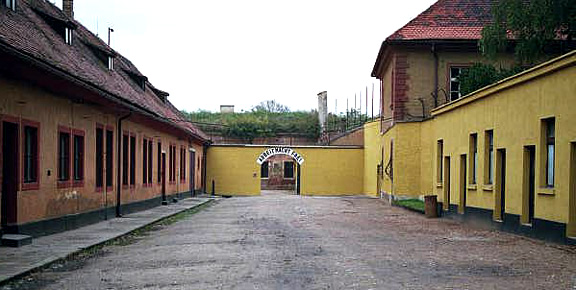 Fortress at Theresienstadt has rooms lining both sides of a yard