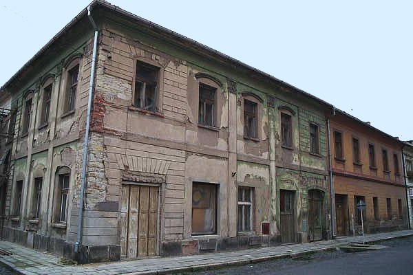 shows an abandoned building in the former Theresienstadt ghetto