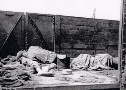 The Dachau Death Train, continued...Previous![]() The photograph above shows some of the dead prisoners on the Death Train that was found by soldiers of the US Seventh Army on April 29, 1945, the day that the concentration camp at Dachau was liberated. These prisoners had been evacuated from the Buchenwald concentration camp on April 7, 1945 before that camp was liberated; they died on the way to Dachau when the trip took much longer than expected, due to Allied bombing of the railroad tracks. In the center of the photo is a bucket, which was probably used for either water or a toilet facility. A pan, that was possibly used for food, is in front of the bucket. Note the open boxcar which provided no protection from strafing by American planes. According to testimony in the trial of Hans Merbach, the transport leader, the prisoners were forced to stay on the train when it was attacked by American planes, while the SS guards took cover. In a book called "The Last Days of Dachau," written by Dr. Ali Kuci, a Dachau survivor from Albania, and Arthur Haulot, a Belgian prisoner at Dachau, the authors wrote that the train had arrived at noon on April 27, 1945 with 1,600 survivors out of 2,400 prisoners who had started on the journey from Weimar. Marcus J. Smith wrote that these figures were changed, after the war ended, to 2,000 to 2,500 survivors out of 6,000 who had been put on the train. A typical transport of prisoners consisted of 60 cars with 100 prisoners in each car. The Death Train passengers were among 7,000 prisoners who made it to Dachau alive when they were evacuated from other camps in the final three weeks before the Americans arrived. There was a total of 14,000 prisoners who had been brought to Dachau in the final two months before the camp was liberated. Another train, which had left Buchenwald around the same time, made it to the Theresienstadt camp in Czechoslovakia, which had already been turned over to the Red Cross by the Nazis, and would soon be liberated by Soviet troops. According to author Sam Dann, there were exactly 2,310 bodies on the train. However, at the trial of 40 staff members of the Dachau camp, before an American Military Tribunal in November 1945, the first witness for the prosecution, Col. Lawrence Ball, an officer in the Army Medical Corps, testified that he had arrived at Dachau two days after the camp was liberated and had seen 38 cars with 10 to 20 corpses in each car. That figures out to approximately 380 to 760 dead bodies on the train. There was no testimony during the American Military Tribunal at Dachau about the 2,310 bodies allegedly counted on the train. Nerin E. Gun, a Turkish newspaper correspondence who was a prisoner at Dachau, wrote the following in an article for the U.S. 45th Division News: There they found some fifty-odd cattle cars parked on the tracks- the cars were not empty. The train was full of corpses, piled one on the other, 2310 of them to be exact. The train had come from Birkenau and the dead were Hungarian and Polish Jews, children among them. Their journey had lasted perhaps thirty or forty days. They had died of hunger, of thirst, of suffocation, of being crushed or of being beaten by the guards. There were even evidence of cannibalism. They were all practically dead when they arrived at Dachau station. The SS did not take the trouble to unload them. They simply decided to stand guard and shoot down any with enough strength left to emerge from the cattle cars. The corpses were strewn everywhere on the rails, the steps, the platforms. "I never saw anything like it in my life," said Lieutenant Harold Mayer, "Every one of my men became raving mad." Contrary to Gun's report, the prisoners on the train were from Buchenwald, but they may have been in Birkenau (Auschwitz II) before being transferred to Buchenwald. Gleb Rahr, one of the survivors, said that 1,300 survivors from the Death Train were lined up and counted at the gate into the Dachau camp, and "another fifteen hundred or so, remained on the train. They were dead on arrival. Some two thousand others died en route." A newspaper article about the liberation of Dachau, written by Howard Cowen, said that only half of the boxcars had dead bodies in them. Some of the prisoners on the train had been shot by the guards along the way when they attempted to escape from the open boxcars. Gleb Rahr recalled that the SS shot everyone in one of the cars because there was some sort of escape attempt. Others had been killed in fights between the prisoners who tried to steal the bread that some had attempted to save for later. Some of the bodies were naked because their clothing had been removed by the other prisoners in an effort to keep warm in the open cars. Even though it was Spring time, it was still cold and snowing in Germany in April 1945. Several eye-witnesses mentioned that they saw prisoners from the train who were lying on the ground in front of the boxcars with their heads bashed in and their brains oozing out onto the ground. The Death Train was on a city street in the town of Dachau, and no one knows how or why these unfortunate prisoners were killed. The "Death Train" made a lasting impression on all the American soldiers who witnessed it. In a letter to Headquarters, Col. Walter J. Fellenz wrote the following on 6 May 1945 under the heading "Subject: Impression of The Dachau Concentration Camp, 1. The Dead Bodies in the Box Cars": It was like approaching a rail siding in any small-size Western town where the appearance of thirty or forty box cars on a single track, lonely and desolate, is not a sight uncommon. As I neared the cars, however, I saw death and destruction of human lives at its height. Each of the thirty to forty cars contained the skin and bones of men and women, thousands of them, half-clothed in rags - dead. Upon closer inspection of the bodies, I found many contained bullet holes. I was later informed by inmates that the SS required the prisoners to lie 