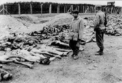 Commandant Johann Eichelsdorfer at Kaufering IV sub-camp of Dachau The photograph above shows Commandant Johann Baptist Eichelsdorfer standing in the midst of the bodies found in the Kaufering IV camp. Note that the bodies in the foreground still have clothing, an indication that they died after the camp was liberated. Commandant Eichelsdorfer was captured a few days after the liberators arrived and brought back to the camp to be confronted with his crime; he was forced to stand in the middle of the corpses while the German civilians were encouraged to scream insults at him.