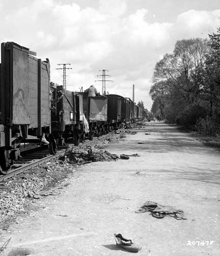 For many of the soldiers who stumbled onto the camp that day, their first glimpse into its horrors came as they walked along a rail spur outside the camp. Crammed into railroad cars and scattered along the tracks were the bodies of men who had been alive when they had begun the long journey during which their captors fully expected them to die of thirst and starvation. At the end of that journey, Dachau's crematory stood eagerly waiting.