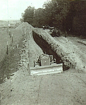The photograph below shows the digging of a trench for a mass grave on the hill called Leitenberg, located a short distance outside the Dachau camp. The trenches were dug with bulldozers by the men of the 40th Combat Engineer Regiment, and German civilians were forced to bury the bodies.