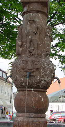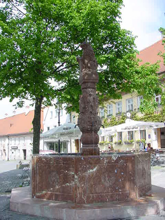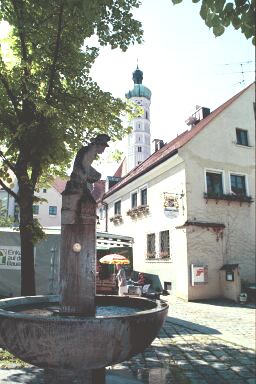 Fountains in Dachau![]() ![]() German cities are noted for their beautiful fountains, and Dachau is no exception. The first two photographs above show the red marble fountain in front of the old town hall. In the background of the first photograph, you can see the white umbrellas over the tables in front of the yellow Zieglerbräu Brewery and Inn. On the extreme left is the Hörhammerbräu Inn. The place where this fountain stands is the very heart of the Altstadt, as the old town is called. The red marble fountain was designed by Ignatius Taschner, a famous Dachau artist who used to hang out at the Zieglerbräu with his great friend Ludwig Thoma, a well-known writer who lived in Dachau from 1894 to 1897. It was erected in 1915 to replace the former town fountain which was moved to the corner of Wieningerstrasse and Freisingerstrasse. That section of Freisingerstrasse is now called Konrad-Adenauer-Strasse. The second photograph above shows a close-up of the tall column of the fountain. On all sides of the column are the carved figures of men and women wearing the traditional dress of Dachau. One can see a display of these regional folk costumes at the District Museum which is on Augsburgerstrasse, only a few short steps from this fountain. The first photograph below shows the fountain which used to stand in front of the old town hall and the adjoining Zieglerbräu building. Shown in the photograph is the intersection of Wieningerstrasse and Konrad-Adenauer-Strasse. The fountain is on Konrad-Adenauer-Strasse. The building in the background is the Kreichgauer House where Dr. Erika Mayer treated prisoners from the concentration camp for dental problems. The second photograph below shows another Dachau fountain with one of the stalls of the Saturday market on Pharrstrasse in the background. In the third photograph is a modern fountain which stand on Augsburgerstrasse across from the Teufelhart Bakery. In the background is the Unterbräu which is down the street from the bakery. ![]() ![]() ![]() WaldfriedhofBack to List of Historic PlacesBack to Table of ContentsHome |