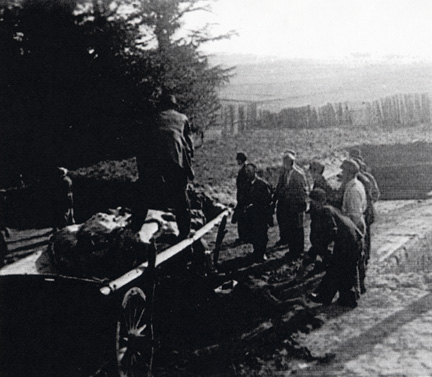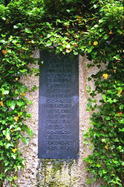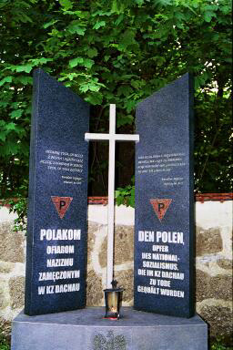 Leitenberg cemetery![]() The lonely hill called Leitenberg is located north of the Dachau concentration camp in the former village of Etzenhausen, which was incorporated into the town of Dachau. The full name of this cemetery is KZ-Friedhof auf der Leiten, which in English means Concentration Camp Cemetery on the Leiten hill. This is where a new cemetery was created by the Nazis in October 1944 after they had run out of coal to burn the bodies of the thousands of prisoners who were dying in epidemics of contagious diseases in the camp. When Dachau was liberated on April 29, 1945, most of the German guards had fled and mounds of unburied corpses were found in the camp. There were also 2,310 bodies found on an abandoned train outside the camp. Everything was left untouched until news reporters, American Congressmen and film makers could be brought in to document the horror. Burial began on May 13, 1945 after the bodies could no longer be kept on display because they were beginning to constitute a serious health hazard. ![]() The corpses were hauled in farm wagons along a circuitous route through the town of Dachau and up to this hill by local farmers, on orders from the American Army. The Americans wanted Dachau residents to feel guilty about how many prisoners had died in the camp. After the liberation, some of the 2,226 prisoners, who died of typhus in the month of May and the 196 who died in June, were also buried here in mass graves which were dug with bulldozers manned by soldiers of the 40th Combat Engineers Regiment, attached to the 45th Thunderbird Division of the US Seventh Army. To get to the Leitenberg cemetery, go north on Konrad-Adenauer-Strasse until you reach the intersection of Freisingerstrasse, then turn right onto Freisingerstrasse. The parking lot at the end of a short side road, which turns off Freisingerstrasse, is surrounded by a ring of beautiful oak trees. Two paths lead from the parking lot, one to the Italian Memorial and the other to the Memorial Hall for the Victims of the Concentration Camp. The Memorial Hall, which was dedicated in 1951, is an 8-sided building about 30 feet high that looks almost round. It contains the emblems of all the countries from which the Dachau victims came. It was designed by architect Professor Harald Roth and sculptor Josef Hiller, both from Munich. In front of the Memorial Hall is a path to a low gate. The path leads through the gate into the cemetery, which is completely surrounded by a low wall. Just inside the gate, there are two monuments, one in honor of the Germans who are buried here and one in honor of the Polish victims. The gate and the two monuments are shown in the first three photographs below. ![]() ![]() ![]() The whole area of the mass graves is surrounded by a wall, about 3 feet high, which you can see in the photograph below. The path follows along the wall. On one short section of the wall, there are plaques with names of the Jewish victims who are buried here. A monument with a Star of David is to the left of the wall at this spot. It is shown in the first photograph at the top of this page. ![]() Christian cross at LeitenbergBack to List of Historic PlacesBack to Table of ContentsHome |