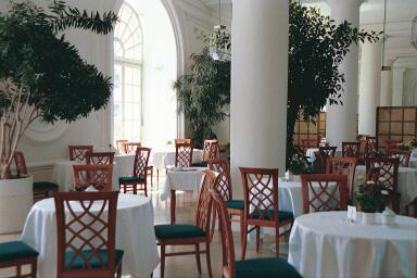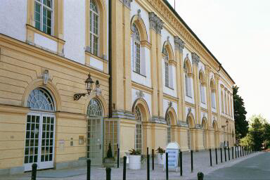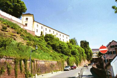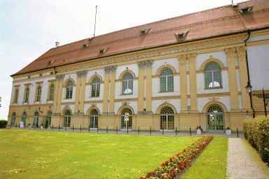 The Castle in Dachau![]() Dachau's palace, called the Schloss, which means the Castle in English, sits atop a hill called the Schlossberg which is 504 meters high. The Schlossberg was the original site of a fortress when the town of Dachau was first founded. The Renaissance-style Baroque castle consists of only one wing of the original four-wing complex which was completed in 1573. It replaced an older castle which was built on the Schlossberg in 1403 and torn down in 1546. The new castle originally had 108 rooms with over 350 windows in its four wings centered around a courtyard. King Max Joseph 1 of Bavaria had three of the four wings of the palace demolished after it was badly damaged in 1806 by Napoleon's troops. The one wing which survived was the western wing with the ballroom. It was remodeled several times over the years and its present appearance is attributed to Dachau architect Josef Effner. The Dachau Regional Museum was located here until 1957 when it was moved to Augsbergerstrasse in the center of the old town. The next photograph below shows a view of the Schlossberg, the hill on which the Castle is located. (The white building in the photo below is not the Castle.) At the bottom of the photograph, you can see part of the old wall of the town, which looks more like a retaining wall than a fortification. This street leads into Dachau from Munich, which is 18 kilometers south of the town. At the top of this street is the original location of the Münchner Tor, one of the three gates into the old walled town of Dachau, which dates back to the year 805. This street is the Karlsberg which is an extension of Münchnerstrasse. At the top of this rather steep hill, the Karlsberg ends where Augsbergerstrasse and Konrad-Adenauer-Strasse meet. ![]() ![]() Today the Schloss is used for concerts, special events and a catering business. There is a restaurant inside and also outdoor tables on the veranda overlooking the orchard of the English garden. On my visit to the castle in May 2001, there was a wedding reception on the veranda. The first photograph below shows the veranda on the southwest side with a party of Americans at the wedding reception. The second photograph below shows an indoor restaurant at the Schloss. On my visit, I had tea on the veranda and sampled the selection of beautiful cakes on display just inside the door to the veranda. The veranda overlooks the English garden which is shown on next page. ![]() ![]() English garden at the SchlossBack to List of Historic PlacesBack to Table of ContentsHome |