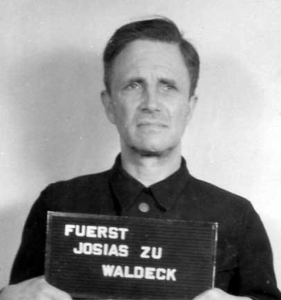 Josias Erbprinz zu Waldeck-Pyrmont sentenced to life, August 14, 1947 Josias Erbprinz zu Waldeck-Pyrmont, the highest ranking prisoner among the accused, was an SS-Obergruppenführer and head of judicial matters in the district which included the city of Weimar and the Buchenwald camp. Waldeck was a member of the German royalty, who had joined the SS in 1929. He is shown in the photograph above, as he faced the Tribunal to hear his sentence of life in prison. His crime was that he had allowed Reichsführer-SS Heinrich Himmler, who reported directly to Hitler, to maintain a concentration camp at Buchenwald which was in his district.