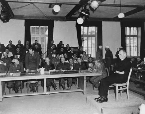 Under direct examination by defense attorney Douglas T. Bates, Weiss said that he was born in 1905 and had worked as an electrical engineer before joining the German army in 1933. Weiss told about how he had improved conditions at the Dachau concentration camp when he became the Commandant in 1942. He said that he had abolished the cruel punishment where prisoners were hung up by their arms, and also the standing punishment where prisoners had to stand outside for days without food.