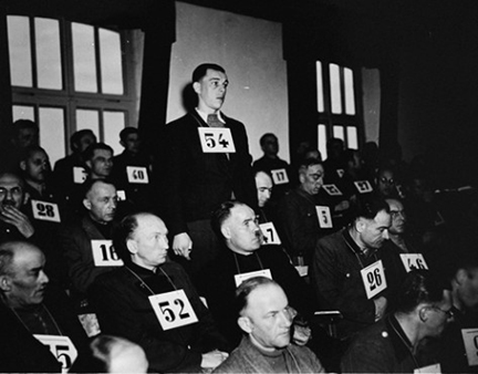 to say to that?" Prisoners had nothing to do with the head count. That was a matter for the block leaders. And I'll tell you now that if I didn't have this number hanging around my neck, these witnesses wouldn't identify me because they have never seen me before. They were told my number before they came into court. They didn't look at my face. They only looked at my number. It's a funny thing, too, that when we first got our charge sheets, not a single one of the prosecution witnesses knew me. No one ever stopped me or called me over. But after Lieutenant Guth put us together in the bunker, all of a sudden everyone calls me "The Kapo." The photo below shows some of the accused at Mauthausen wearing large numbers hung around their necks. Willie Frey appears to be in the background of this photo, directly behind the man wearing the number 16. Many other photos taken at the trial show the men not wearing identification numbers. ![]() The testimony of Willy Frey continues, as quoted by Joshua M. Greene in his book: "Willy, I hand you prosecution's exhibit 133. Why did you put these things down if they were not true?" "I was afraid that if I said no, I would be beaten again." "Had you been beaten before?" "Yes, in Mossburg. Severely. An American officer put a pistol on my chest and said he would shoot me." Lt. Col. Denson interrupted at this point to "object to any further testimony along this line unless it has some connection to this case." The objection was sustained. Lt. Col. Denson then began his cross examination of Frey, as quoted in Joshua M. Greene's book: "What is the name of the officer who interrogated you here in Dachau?" "Lieutenant Conn," replied Frey, pointing to an officer seated in the courtroom. "You received no mistreatment here at the hands of Lieutenant Conn, did you?" "No, but the court really cannot have any impression of what spiritual condition I was in at that time." "We are not asking you at this time about your 'spiritual condition,' Willy. At the time you signed the statement, you knew the difference between true and not true, did you not?" "I didn't know anything." When asked "Did you ever engage in any kind of business before joining the SS?" Willy answered as follows: No. I was a laborer. My parents were dead, and the mayor of our town forced me to join the SS because he said the community had no money to support me. Then Frey turned to A.H. Rosenfeld, the Law Member of the court and asked if he could say something else. When given permission to speak freely, he said the following: I was imprisoned by the Nazis and the SS when I was seventeen for sabotage to the state. I don't understand how I can be accused of being one of them in any common design. I wouldn't kill any prisoners. Witness Schmeling was a worse beater. He was the worst Kapo in the camp. And he wants to make prisoners who were in the camp only a few days responsible for the evil things he did. As soon as the Americans came in, Schmeling hid at once so the prisoners wouldn't catch him because they would have killed him, too. And the witness Marsalek? I hold him responsible for German prisoners who were killed after the liberation. He went through the barracks with the first camp clerk and picked out prisoners and kapos and block eldests who behaved badly toward the prisoners-and he had them killed either through shooting or beating to death. But he knew I wasn't bad and he told the Russians who wanted to pick me up, 'Leave Frey alone. He came from Auschwitz. He hasn't got anything to do with Mauthausen.' Those two Jews, Ziegelmann and Lefkowitz? I never saw them in my life, and they were probably in the same position as I was. And they probably had very little school too, because they couldn't even spell their names when the defense counsel asked them to. It's a funny thing when bums like that can say, 'Yes, this guy beat this other guy to death,' and they don't even know me. I will say again, if the court would have left out the numbers, I wouldn't have been recognized and I wouldn't have been identified. To make me out as if I was worse than the Gauleiter - it's not true. I never beat a prisoner, and I never beat a prisoner to death. I ran away from a dead body when I saw one. That is all." The Gauleiter referred to in Frey's testimony was August Eigruber. Back to Start of Mauthausen TrialThe Case against August EigruberThe Defense CaseTestimony of Jack TaylorGas Chamber TestimonyConfessions of the AccusedProsecution WitnessesTrial of Spanish KaposFranz Kofler TrialBack to Dachau TrialsBack to Mauthausen indexHomeThis page was last updated on October 30, 2009
