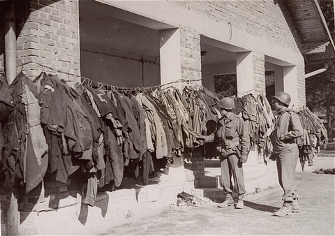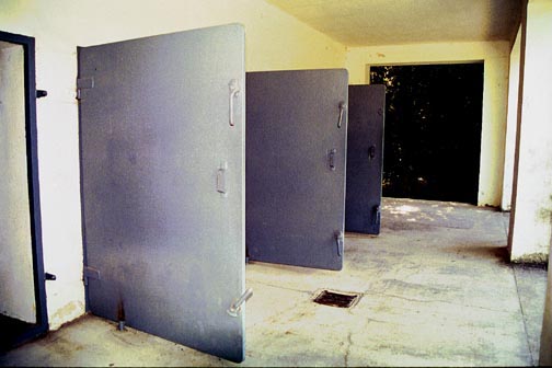 Dachau Disinfection Gas Chambers"The first place visited was a large yard, in which piles of assorted clothing were stacked. In one pile were shoes, another, pants, and so on. As the group moved through the camp, we saw four large ovens in which bodies were cremated." 1st Lt. William J. Cowling, III, 42nd Rainbow Division, from his Report of the Surrender of the Concentration Camp at Dachau, 2 May 1945 ![]() The photograph above shows the south end of the Baracke X building with 4 wide doors which are open. These are the doors into the 4 disinfection chambers which were used for delousing the clothing at Dachau. The door on the far right is the entrance to a toilet. Each of the disinfection rooms has another door into an open-air hallway, as does the toilet. On April 29, 1945, the day that Dachau was liberated, the soldiers of the 42nd Division arrived at the gatehouse with the "Arbeit Macht Frei" sign, then walked north to the crematorium area which was outside the prison compound. The first thing they saw was the piles of clothing outside this building, waiting to be deloused. In this same building, the soldiers saw the crematory ovens at the north end and the homicidal gas chamber in the center. When the soldiers of the 45th Thunderbird Division of the US Seventh Army arrived separately on the same day, they entered the camp complex through a railroad gate at the southwest corner of the SS Training Center and approached the new crematorium from the west side. On the branch railroad line that ran to the SS camp at that time, they first saw an abandoned train with bodies of dead prisoners, before coming upon this building; they then proceeded south to the gatehouse entrance into the prison compound. The photograph below shows three of the disinfection gas chamber doors on the outside of the building. These doors are as wide as the rooms, to provide plenty of ventilation; the manufacturer of the Zyklon-B pellets recommended that the rooms be aired out for 20 hours after gassing. Notice that the disinfection chamber doors are the same style as the door into the homicidal gas chamber, shown in the second photo below. ![]() ![]() There is one floor drain on the covered porch of the building, which you can see in the photograph above, but no floor drains in the 4 delousing rooms. A close-up of the drain is shown below. It is similar to the 6 drains in the homicidal gas chamber and the 2 drains in the mortuary room. ![]() On the south side of the new crematorium building, the American liberators saw the 4 wide doors into the disinfection gas chambers. A wire was strung across the posts of the porch to hold the clothing that had just been deloused. A huge pile of clothing was on the east side of the building, waiting to be deloused. ![]() These American soldiers had never heard of using poison gas to kill lice. At that time, America was using DDT for this purpose. Typhus had been completely wiped out in America and most of these soldiers had never heard of it; they didn't know that typhus is a contagious disease spread by body lice. They saw the word "gas" written on the 4 disinfection chamber doors, and assumed that these were the infamous gas chambers used for killing the Jews. They saw the deloused clothing hung up and assumed that the prisoners had been forced to undress and hang their clothing on a hanger before entering the disinfection chambers to be killed. It had been common knowledge throughout the world since June 1942 that the Nazis were murdering millions of Jews in gas chambers. The photograph below, which was taken by T/4 Sidney Blau on April 30, 1945, shows a US soldier standing in front of one of the disinfection chamber doors. Note the word "Gaszeit" on the door, which has since been repainted. Gaszeit means gas time in English. ![]() The caption which the US Army put on this photo was as follows: Gas chambers, conveniently located to the crematory, are examined by a soldier of the U.S. Seventh Army. These chambers were used by Nazi guards for killing prisoners of the infamous Dachau concentration camp. ![]() The photograph above shows the exact same door where the US soldier was standing in the photograph above. This door has now been bolted to another door so that it remains open. Today a sign over these "gas chambers" tells visitors that these rooms were "Fumigation cubicles" as shown in the photo below, taken in May 2003. ![]() Although there is a black sign with white letters near the ceiling which says "Fumigation cubicles" in five languages, many people still think these cubicles were used for homicidal gassing. Just after I finished taking the above photograph in May 2003, a tour group entered the corridor and an English-speaking guide told the students: "When a transport of Jews was brought to Dachau, they had to remove their clothes, and then they entered these chambers where they were gassed." A film, made by the American liberators in May 1945, is shown every hour at the Dachau museum. It shows the fumigation cubicles, but does not explain that they were used for delousing clothing. This is the film that was shown at the Nuremberg International Military Tribunal as proof that prisoners were gassed at Dachau. The photograph below was taken from the open-air hallway behind the 4 disinfection rooms. You can see three of the doors into the disinfection rooms and part of the opening into the fourth chamber on the far right. ![]() Originally, there was one disinfection gas chamber located in a half-timbered building at the northeast corner of the camp, near where the Jewish Memorial now stands. As the camp population grew, the amount of clothing to be disinfected required the building of four new disinfection gas chambers in the new crematorium building, which was finished in April 1943, according to a display at the crematorium building. ContinueOld Disinfection BuildingBack to Table of ContentsHomeThis page was last updated on March 13, 2008 |