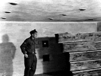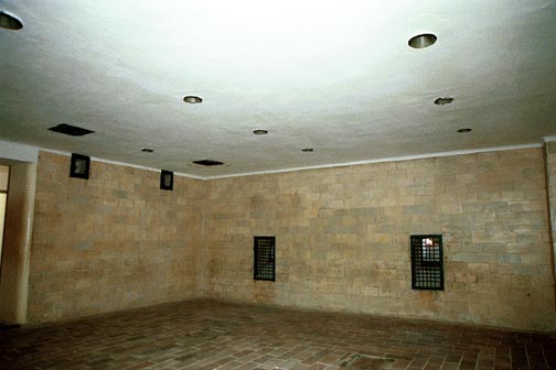 Dachau Gas Chamber Interior"The internees who were brought to Camp Dachau for the sole purpose of being executed were in most cases Jews and Russians. They were brought to the compound, lined up near the gas chambers, and were screened in a similar manner as internees who came to Dachau for imprisonment. Then they were marched to a room and told to undress. Everyone was given a towel and a piece of soap, as though they were about to take a shower. During this whole screening process, no hint was ever given that they were to be executed, for the routine was similar upon arrival of all internees in the camp." Quoted from The Official Report by the U.S. Seventh Army, released only days after the camp was liberated. ![]() The photo above shows the interior of the Dachau gas chamber with the west wall in the background. On the left side is the door to the undressing room. Mounted on the wall near this doorway is a spotlight which was added recently; it is the only light in the room. The sign in the right hand corner, which says in 5 languages that this gas chamber was never used, was removed in 2003. The back wall of the gas chamber has a vent on the left side near the floor, which the display in the undressing room describes as follows: "Vent on floor - An influx of warm air from a condenser in the attic was supposed to accelerate the evaporation of poison pellets." This vent was shown in the movie about the gas chamber which was presented as evidence at the Nuremberg IMT; the narrator of the film said that this was a "gas vent." The "poison pellets" mentioned in the display in the undressing room were Zyklon-B pellets which are about the size of peas. These same pellets were used in the four disinfection chambers in this same building. However, the film shown at the Nuremberg IMT said that the lethal gas that was used in the homicidal gas chamber was in "powder" form, not pellets. The back wall of the gas chamber has two small openings. The top opening in the center of the wall is described as a "peephole from the left corridor to look into the gas chamber." The bottom opening is described as follows: "Water pipe - water supply to clean the room after the dead had (sic) removed." The photograph below shows the peephole and the water pipe on the back wall. Notice that the tiles around the peephole do not match the tiles below it and the boxes for the peephole and the water pipe are not alike. ![]() ![]() ![]() The gas chamber peephole is shown in the photograph below which was taken by the U.S. Army. A soldier is standing to the left of the peephole which is about chest high; the peephole had to be placed low on the wall because there is a box with push buttons above it on the wall behind the gas chamber. On the right-hand side of the photo below is what appears to be wooden coffins. Note the shower heads, flush with the ceiling, which are all gone now, except for one. The peephole has now been closed up. ![]() ![]() The photo above shows the east wall, which is on the front of the building. In the center of the wall are two openings for the bins on the outside wall. Zyklon-B gas pellets could have been poured into the gas chamber through these openings. On the far left is the door into the morgue where the bodies were stored prior to burning in the ovens. In the photograph above, two ceiling vents are visible above the wall on the left. Regarding these vents, the information given on the wall of the undressing room is as follows: "Openings to a ventilator in the attic used to air out the gas chamber." There is only one vent pipe on the roof which had to be shared by both of these vents. The photograph below shows a close-up of the vent on the right-hand side, near the corner of the room. ![]() There are 6 floor drains in the gas chamber and the water used to clean the room would have gone down the drains into the sewer system. The information given in the undressing room does not explain how the "poison pellets" were prevented from being washed down into the sewer line. The disinfection chambers at Dachau which used the same "poison pellets" did not have a floor drain inside the chamber; the pellets were dropped into a wire basket, from which they were retrieved after they were used, put back into the can and returned to the manufacturer to be recycled. There was no provision for retrieving the pellets in the homicidal gas chamber. Although several early reports by members of the US Army confirmed that there was a workable gas chamber at Dachau, a report by Sgt. Joseph H. Gilbert to Major James F. Munn, Headquarters Third United States Army, Enemy Equipment Intelligence Service Team Number 1, Chemical Warfare Service, 22 August 1945, stated the following: Based on the interviews noted above, and further, based on actual inspection of the Dachau gas chamber (it has apparently been unused), it is the opinion of the undersigned that the gas chamber was a failure for execution purposes and that no experimental work ever took place in it. In view of the fact that much reliable information has been furnished the Allies by former inmates regarding the malaria, air pressure and cold water experiments, it is reasonable to assume that if such gas experiments took place, similar information would be available. The gas chamber, as described by the first people who saw it, was indeed a failure because the "gas nozzles" on the ceiling were not connected to the gas pipes. The Dachau gas chamber was described in Document No. 47 of the 79th Congress, 1st Session, Senate Report (May 15, 1945) of the Committee Requested by Gen. Dwight D. Eisenhower to the Congress of the U.S. relative to Atrocities and other Conditions in Concentration Camps in Germany. This document, which is quoted below, was entered into the Nuremberg trial proceedings as IMT Document L-159. "The gas chamber was located in the center of a large room in the crematory building. It was built of concrete. Its dimensions were about 20 by 20 fee