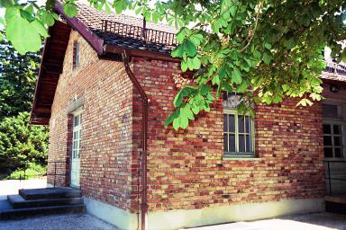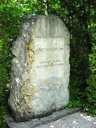Location of new Crematorium at Dachau"...I inspected the crematorium. It was located several hundred yards from the Enclosure Gate. It consisted of several large buildings, entirely hidden from outside view by a large well-trimmed hedge over twelve feet high. Passing through the arched gate, I was confronted by a formal garden; green grass neatly cut, beds of flowers along the cinder paths, a water fountain and several large birdhouses from which turtle doves came and went. " Lt. Col. Fellenz, 42nd Rainbow Division, from his Official Report to the Commanding General, 6 May 1945 ![]() The area where the new crematorium building, called Baracke X, is located is outside the prison compound on the west side of the camp at the north end. This area is isolated from the prisoners' barracks by the swift-flowing Würm river, which runs in a straight line through a concrete-lined canal along the border of the camp on the western side. The entrance to the crematoria area is through the gate shown in the photo below. In the foreground is a bridge over the Würm river canal. This bridge and the gate were built in 1965 when the Dachau camp was turned into a Memorial Site. ![]() The photograph directly below shows the small bridge across the Würm river at the entrance to the crematoria area. Behind the bridge, you can see a wall which was built around the crematoria area after the camp was liberated. The path in front of the wall leads south toward the gatehouse, where there is a locked iron gate in another wall that has been built since the liberation to close off the crematoria area. ![]() Just after you cross the bridge shown above and enter the crematoria area, you will see the memorial stone shown in the photograph below. This was the first memorial erected at Dachau. The English translation of the words on the stone is "Crematorium - Think about how we died here" ![]() The photograph below, taken from behind the building, shows the north end of Baracke X. In the photograph, you can see branches of a beautiful chestnut tree, planted after the liberation. There is a bench under this tree where one can rest in the shade and contemplate the nearby grave where the ashes of thousands of unknown victims of the Dachau concentration camp were buried. The door on the left leads to a morgue room next to the oven room, which is shown in the old black and white photo below. ![]() ![]() The photograph above was taken in April 1945 when the Dachau camp was liberated. It shows fully-clothed bodies of dead prisoners in the morgue room that is to the north of the crematory ovens. ![]() The photo above shows bodies of dead prisoners in the morgue at Dachau. Note the blood running into the floor drain in the center of the photo. More Photos of Baracke XCremation Ovens in Baracke XOld Photos of cremation ovensBack to Table of ContentsHomeThis page was last updated on April 3, 2008 |