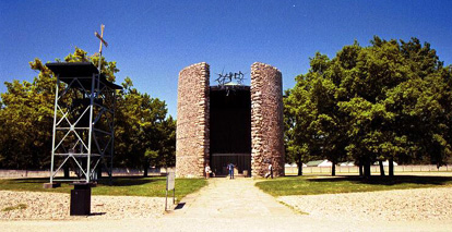 The story of Dachau, as told to touristsReligious Memorials![]() The former Dachau concentration camp now has Memorials to the Catholics, Protestants and Jews who suffered and died there. The photo above shows the Jewish Memorial. In the background of the photo above is a Carmelite convent that was built before the Jewish Memorial was added. Many visitors are critical of the fact that the Catholic and Protestant memorials have the best locations, in the mistaken belief that Dachau was mainly a camp for Jews. The Jewish Memorial, designed by Frankfurt architect Hermann Zwi Guttmann, is located approximately 40 yards east of the Catholic Memorial, which is shown in the photo below. ![]() Note that the Catholic Church, shown in the photo above, does not have a cross on top of it, but instead has a crown of thorns much like the one worn by Jesus on the cross. A large church bell, which was donated by the former Austrian prisoners in the camp, stands near the church. The bell tower, which is shown on the left in the photo below, has a cross on top. Many visitors mistakenly assume that this bell was used to call the prisoners for roll call. The tour guides tell visitors that the bell now rings at 2:50 p.m. each day to commemorate the exact time that the Dachau camp was surrendered to the 42nd Rainbow Division of the U.S. Seventh Army. ![]() ![]() At the end of the gravel beds which denote the location of the former barracks, and directly across from the building where the gas chamber is located, is a Protestant Church where services are currently held on Sundays. The steps were designed to have no right angles because this would be a reminder of the hated Nazi ideal of order and the precisely measured right-angled barracks. The most famous Protestant at Dachau was the Reverend Martin Niemöller who was convicted of treason by the Nazis. ![]() The most recent memorial to be built at Dachau is the Russian Orthodox Church which was dedicated on April 29, 1995 in honor of the Soviet Prisoners of War who were imprisoned at Dachau. There were 3,900 Russian prisoners at Dachau when the camp was liberated, the second largest ethnic group in the camp. Gas chamberDachau Museum & BunkerRefugee Camp at DachauArbeit Macht Frei gateEntrance to Memorial SiteInternational Monument & Unknown PrisonerBack to Dachau Concentration CampBack to Table of ContentsHomeThis page was last updated on October 24, 2009 |