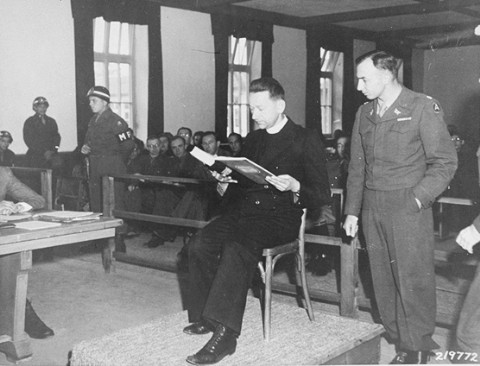 After the Dachau camp was liberated by American soldiers and the typhus epidemic was brought under control in June 1945, the former concentration camp was turned into a prison for German war criminals. The SS soldiers who were imprisoned at Dachau, to await trial by an American Military Tribunal, built a Catholic church near the Dachau gate house. Father Leonard Roth stayed on in the camp to serve as the priest for the Catholic SS soldiers. The street that runs along the Dachau Memorial Site is named after Father Leonard Roth, who redeemed himself by his service to others. Father Franz Goldschmitt was sent to Dachau on December 16, 1942 and released in May 1945 after the camp was liberated. Father Goldschmitt wrote a book about his time at Dachau, entitled "Zeugen des Abendlandes" (Western Witnesses). The book is no longer in print, but it is still frequently quoted today. The following is a quote from page 24 of Zeugen des Abendlandes by Father Franz Goldschmitt: Inside and outside the prison camp many gardens were laid out. The largest garden bearing the name plantation was a huge square area under cultivation, approximately 550 yards square. It had been wrested from the Dachau marshes at the cost of countless human lives. Paths and drains traversed the fertile ground. The plantation was used chiefly for the cultivation of medicinal plants. Jews and priests, hundreds of whom died, had to cultivate the marshy land from 1940-1943. The plantation was, in the truest sense of the word, fertilized with human sweat and blood. During the good weather, about 1300 prisoners were employed, in winter between four and eight hundred. The latter cared for the seedlings in the greenhouses, the former planted and looked after countless varieties of tea plants. Vegetables for the inmates of the camp were also cultivated, and even flowers were to be seen though they were used mainly for medicinal purposes. The prisoners cared for approximately 12 acres of swordlilies alone, because of their vitamin content. In spring and summer the fresh green of the plantation, the smiling flowers and the friendly country houses would have presented an inspiring picture, had it not been for the terrible slavery. Parish priests were yoked to the ploughs and harrows, and six men apathetically dragged the heavy load along. Carrying water in the drought, collecting tea and drying the tea plants in a temperature of 70 degrees centigrade were very laborious occupations. The photo below, taken in 1938 inside the Dachau camp, shows how the prisoners were forced to work like animals, harnessed to wagons. Priests at Dachau were yoked to plows in the same way, except that six men pulled one plow. ![]() Father Franz Goldschmitt was a German priest who was allowed to attend, or to say Mass, in Block 26 every morning. Apparently, the German priests were also allowed to make and consume coffee in their barracks before roll call. The following quote is from his book: We priests were awakened an hour before the other prisoners usually about 3:30 a.m. We assisted at Mass, swallowed coffee and marched in rows of ten silently to the square for roll call. Father Goldschmitt also wrote about the abuses at roll call. The following quote is from his book: We stood here in silence until the officer had ascertained that all the prisoners had arrived. If a comrade was missing, which sometimes happened, all had to remain standing until the person concerned was found again. [...] One Sunday we had to stand four full hours in the glaring sun, bareheaded, as the wearing of any type of headdress was forbidden from the beginning of May until September. Many of my comrades collapsed that day. I was an eyewitness when a Polish parish priest, utterly exhausted from the misery of it all, fell dead to the ground. My priest friends told me that shortly before my arrival, a roll-call lasted over seven hours. Twenty corpses had to be carried away afterwards. Gun wrote in his book "The Day of the Americans" that Cardinal Faulhaber in Munich sent food packages to Dr. Johannes Neuhäusler right up to the time that the prisoners in the "Honor Bunker" were sent to the Tyrol for their own protection before the camp was liberated. Gun pointed out in his book that Hitler was Catholic and that "he paid his religious dues to the German Catholic Church until the day he died." Hitler was never excommunicated by the Pope, according to Gun, and he never apostasized. Dr. Johannes Neuhäusler wrote in his book that, as the Allies began to approach the camp, the food parcels, which the prisoners were accustomed to receive from outside the camp no longer arrived. The priests at Dachau did without their daily ration of camp bread in order to give it to those who could no longer receive parcels. Because of the fact that they were exempt from work, the priests were chosen as subjects for medical experiments, conducted by Dr. Klaus Schilling, on a cure for malaria. As a result of these experiments, many of the priests died. ![]() In the photograph above, a Catholic priest, Father Theodore Korcz, reads from a record book kept by Dr. Klaus Schilling about the malaria experiments which he conducted on the priests at Dachau while Lt. Col. William Denson, the American prosecutor, looks on. According to Dr. Neuhäusler, there were also experiments done to test a biochemical remedy on the "purulent inflammation of the membranes" which is called Phlegmone in Germany. Twenty healthy priests were chosen for the experiments. Although some of the victims had to have arms or legs amputated and only 8 of them survived, "No one called the physician to account." Apparently this unnamed physician was never put on trial. As quoted on this web site, Father William J. O'Malley, a Jesuit priest, wrote the following: Priests from Dachau worked in the "Plantation" and in the enormous S.S. industrial complex immediately to the west of the camp. In February 1942, two groups of younger Polish priests and sc
