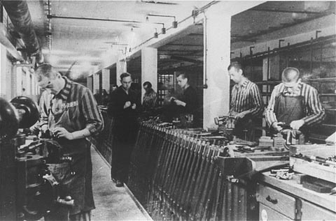 Work in the Dachau camp![]() The Labor Allocation Office (Arbeitseinsatz) was the most important office in the camp administration. This office allocated the laborers for the work commandos (Arbeitskommandos) and also determined which prisoners would be transported to other concentration camps or to the Dachau sub-camps to work. According to the book entitled "Dachau Liberated, The Official Report by the U.S. Seventh Army," which was based on two days of interviews with the Dachau survivors, the Labor Allocation Office "was run entirely by prisoners." The following quote is from The Official Report by the U.S. Seventh Army, released only days after the camp was liberated: The staff consisted of a chief, several assistants and a group of clerks. The office maintained files which contained all personal data pertinent to the allocation of individuals for work of various kinds. The three main sources of employment at Dachau were (a) work inside the camp, (b) work at the SS camp, (c) work in farms and in factories in the area. The lists of people to be shipped off on transports was usually compiled from those prisoners who were not part of a regular "Working Commando." The Work Allocation Leader at Dachau was SS-Oberscharführer Wilhelm Welter, who had been on the Dachau staff since 1935. According to the Official Report by the U.S. Seventh Army, "He was very brutal and was accused of killing many prisoners and prisoners of war." Welter was among the 40 staff members who were put on trial by an American Military Tribunal at Dachau in November 1945. Dr. Franz Blaha, a Communist prisoner at Dachau, testified that Wilhelm Welter was responsible for the deaths of prisoners at Dachau, but he also stated that the only deaths that he could remember had occurred in 1944, which was a year after Welter had left the Dachau main camp to work for six months in the Friedrichshafen sub-camp of Dachau. Welter was found guilty by the American Military Tribunal and was executed by hanging on May 29, 1946. The following quote is from The Official Report by the U.S. Seventh Army, based on interviews with the Dachau survivors: Nevertheless, the positions in the Labor Office and the subsidiary command over the "work commandos" afforded sufficient power to serve as an incentive for individuals and groups to seize these positions and defend them against outsiders. Historically, these groups were Germans simply because Germans were the oldest inhabitants of the camp. As far as we could trace the developments back, some kind of a group or clique seems to have first formed in 1937 under an Austrian Socialist by the name of Brenner. The "Brenner Group" in the Labor Office included both German and Austrian Socialists. After the release of Brenner, it was superseded by a combination of German Socialists and Communists under a certain Kuno Rieke (Socialist) and a certain Julius Schaetzle (Communist). This combination and their staff were in control of the Labor Office until June 1944, when Schaetzle was suspected of conspiratorial activities and shipped off in a transport. A temporary regime succeeded the Rieke-Schaetzle group until September 1944, when a new regime gradually took over, eliminating all Germans from positions of influence in the Labor Office. This last group, composed of Alsatians, Lorrainers, French, Luxembourgers, Belgians and Poles, is still in charge of the Labor Office today. The photograph below shows Dachau prisoners marching in single file, as they pass the newly constructed administration building that now houses the Museum at Dachau. These prisoners might be on their way to the factories which were just outside the "Arbeit Macht Frei" gate on the west side of the administration building, or they might be marching to pick up construction materials. Usually, an orchestra was playing at Dachau as the prisoners marched to work. ![]() In 1938, two of the Dachau prisoners, Soyfer and Herbert Zipper, wrote a song about Dachau. Called the Dachaulied or Dachau song, the lyrics were about how the prisoners had to march in and out of the "Arbeit Macht Frei" gate on their way to work. Except for the priests, most of the prisoners at Dachau worked in the factories, or on the nearby herb farm, called the Plantage. In addition to a factory where rifles were made, there was a factory at Dachau for making uniforms for the German Army, a porcelain factory, a paper factory, and a screw factory. Other prisoners worked in the town of Dachau at a meat packing plant. A few of the women and the younger inmates were employed by residents of Dachau in their homes. ![]() ![]() According to Herbert Stolpmann, who was a former German soldier working for the US military at Dachau after the liberation of the camp, some of the Dachau prisoners lived with families in the town of Dachau during the war and worked for them. Stolpmann's father-in-law owned the Bielmeier bakery, which supplied bread for the prisoners in the camp. Two Russian boys, aged 13 and 14, lived with the family and worked at the bakery, which was called an Arbeitskommando or Work Commando. When the boys reached the ages of 16 and 17, they were taken to the camp and executed. They had been sentenced to death after they were captured as Partisans, but under the German law, no one under the age of 16 could be executed. The Bielmeier family also had a French woman from the Dachau camp living with them; she was engaged to be married to an SS guard, but she was also taken away, never to be seen again. According to Marcus J. Smith, a US military doctor who was assigned to Dachau after it was liberated, there was an "experimental farm, the Plantage" just outside the concentration camp. Smith wrote in his book "The Harrowing of Hell" that "When the Reichsfuehrer SS (Himmler) inspected, he seemed particularly interested in the Plantage, discoursing enthusiastically on the medicinal value of herbs." Smith learned that the farm was the "brainchild of the Reichsfuehrer SS, 
