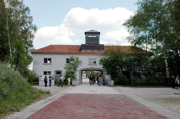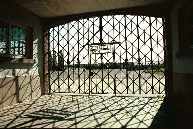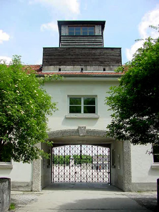 Gatehouse into Dachau prison compound![]() ![]() The color photograph at the top of this page, taken in May 2007, shows the road up to the Dachau prison compound gatehouse, which was paved with bricks, as seen in the old black and white photo above. The 2007 color photo shows a section of the brick-paved road that was uncovered in 2005. Note the grass-covered mound on the left side of the color photo; this is the rubble from factory buildings which were torn down in the 1980s. The old black and white photo immediately above shows the gatehouse as it looked shortly after the camp was liberated on April 29, 1945. The gatehouse is original, not a reconstruction, but a comparison of the two photos above indicates that the original roof of the tower has been replaced. Note the two poplar trees on either side of the gate. When the camp was in operation, there was a line of poplar trees on both sides of the road up to the gatehouse. These trees are now gone, but other trees have grown up, which now obscure one side of the gatehouse. On the right, in the old photo above, you can see the remains of a narrow gauge railroad track which ended a few feet from the gatehouse. A section of these tracks remain today and can still be seen a few yards away from the gatehouse. The photo below shows the narrow gauge railroad tracks which parallel the road to the Dachau prison compound gatehouse. These tracks were not used for trains to bring the prisoners to the gatehouse. The incoming prisoners had to walk from the train station in Dachau to the camp. ![]() ![]() The photograph above, taken in May 2003, shows the entrance into the Dachau prison compound through the "Arbeit Macht Frei" gate before the roof was replaced. In 2003, a high wall across the end of the short bridge over the Würm river canal, which is behind the camera in this shot, prevented tourists from seeing the location of the entrance road, which was covered with rubble at that time. The SS garrison at Dachau, along with the gatehouse, was used by the American military for 28 years after the camp was liberated. ![]() The iron gate at the entrance through the gatehouse into the prison compound, shown in the photo above, is the original gate, which was built by a prisoner named Karl Röder. The sign which reads "Arbeit Macht Frei" was removed soon after the camp was liberated, but it was reconstructed in 1965 at the same time that two barrack buildings were reconstructed for visitors. One of the reconstructed barracks can be seen on the left side of the photo above. The slogan "Arbeit Macht Frei" was allegedly coined by Propaganda Minister Josef Goebbels in an effort to convince the public that the Nazi concentration camps were merely work camps designed to politically rehabilitate Communists, Social Democrats and anarchists. This slogan was first used over the gate of a "wild camp" in the city of Oranienburg which was set up in an abandoned brewery in March 1933 during the time that the first political prisoners were being held for an indefinite period without charges in a number of places in Germany. In 1936, the Oranienburg camp was rebuilt as the Sachsenhausen camp. The Dachau camp was also rebuilt, starting in 1936. The gatehouse at Sachsenhausen also bears this inscription, but the third major German concentration camp, Buchenwald, has a sign on the gate that reads "Jedem das Seine," which means To Each his Own. Buchenwald was a Class II camp, while Dachau and Sachsenhausen were Class I camps for offenders who were considered capable of being rehabilitated and who were eligible for possible release. Rudolf Höss, who trained at Dachau and then served as an adjutant at Sachsenhausen before becoming the first Commandant at Auschwitz, used this motto over the gate into the main camp, Auschwitz I, which was classified as a Class I camp for political prisoners. (Auschwitz II, also known as Birkenau, was not a Class I camp. Birkenau did not have this slogan over the gatehouse.) Mauthausen and Gusen in Austria were the only Class III camps, where prisoners, who were considered beyond rehabilitation, were treated very harshly. These classifications went into effect on January 1, 1941. Two other Nazi concentration camps which used the slogan "Arbeit Macht Frei" on their gate houses were Flossenbürg and Gross-Rosen. This slogan also appeared on a gate inside the Gestapo prison in the Small Fortress at Terezin, formerly known as Theresienstadt. Inside the gatehouse are two plaques in honor of the soldiers in the U.S. Seventh Army who liberated the camp on April 29, 1945. ![]() ![]() ![]() The 45th Thunderbird Infantry Division also participated in the liberation of the Dachau camp, but they declined to have a plaque in their honor. The 45th Division was involved in what has become known as the Dachau massacre. ContinueBack to Dachau Concentration CampBack to Table of ContentsBack to Dachau indexHomeThis page was last updated on October 5, 2009 |