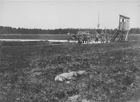 Dachau Museum 1965 - 2002"We came to the question: How is it with the women and children? I decided to find a clear solution here as well. I did not consider myself justified to exterminate the men - that is, to kill them or have them killed - and allow the avengers of our sons and grandsons in the form of their children to grow up. The difficult decision had to be taken to make this people disappear from the earth." Heinrich Himmler, 6 Oct. 1943, speech at Posen ![]() The photograph above shows a huge blowup of a picture that hangs in the Dachau Museum, although it was taken at the Buchenwald concentration camp. As you can see, there is a forest in the background which identifies the surroundings as those of the Buchenwald camp. The photograph shows a cruel and inhuman punishment which the Buchenwald Museum says was devised by the SS guard at Buchenwald who is shown in the picture. Prisoners were hung by their arms from a tree for an hour or more. According to the Dachau Museum, this punishment was also used at the Dachau concentration camp. Prisoners were hung on poles erected in the courtyard between the service building and the bunker. The photograph below shows a display about Heinrich Himmler, the man who started it all. Himmler was the 32-year-old Chief of Police in Munich when he announced on March 20, 1933 that a concentration camp would be opened in the abandoned gun powder and munitions factory in the eastern section of Dachau. What looks like a toupee that doesn't quite cover his bald head is really a popular haircut of that time: the sides and back were shaved with only a section on the top left. His Hitler-style moustache was also popular among the Nazis. This style was adopted after World War I when German men shaved off the ends of their handlebar moustaches after Kaiser Wilhelm II, who wore this popular style, was forced to abdicate. ![]() The exhibits in the Dachau Museum are mainly photographs with very few artifacts from the former camp. There is a blue and gray striped uniform and a pair of wooden shoes on display but almost nothing else. In the Dachau Museum, you won't see any glass cases full of hair or open cans of Zyklon B with the gas pellets spilling out. One reason for the almost total lack of artifacts is that the camp was in use, until the late 1950ies, as a refugee camp for 5,000 homeless Germans who were evicted from Poland, Czechoslovakia and eastern Germany after the war. By the time the former concentration camp was turned into a Memorial Site, all the things used by the former inmates were long gone. If you want to see Nazi memorabilia, try the Museum of Tolerance at the Simon Wiesenthal Center in Los Angeles. You won't see any of that here, since all things Nazi were banned in Germany after the war. There is nothing in the Museum about the SS training center and garrison which made up 3/4 of the original Dachau complex. This Museum is all about the victims in the camp, not the perpetrators. A sign in the lobby says that the displays are not appropriate for children under 12 years of age, but this is not a horror museum. Most of the visitors are high school kids. A typical photograph in the museum is the one shown below, which shows a prisoner who was "shot while attempting to escape." ![]() The photograph above, which was taken on May 14, 1941, shows the body of Abraham Borenstein lying in the foreground after he was shot by the SS at Dachau. Two of the SS men pictured are Egon Zill and Franz Johann Hofmann, who participated in the execution. A large group of prisoners can be seen laboring in the fields in the background. After the Russians liberated the Majdanek camp near Lublin, Poland in July 1944, they set up the first concentration camp museum there a month later. This set a precedent for the Allied liberators to use the concentration camps for educational purposes. The Russians were anxious to convert the Poles to Communism by showing them the evils of Fascism. When Dachau was liberated by the Americans, they immediately began educating American soldiers about why they were fighting the Germans. The first museum at Dachau was set up by the American Army in the crematorium building where the gas chambers are located. A sign near the crematorium informed the soldiers that 238,00 persons had been cremated there, more than the number of registered inmates. The soldiers were led to believe that the ashes remaining in the ovens were those of the innocent victims of the Nazis, but they were actually the ashes of the German SS soldiers who were shot with their hands in the air by the American liberators. The ovens had not been used since October 1944 when the US Seventh Army arrived in April 1945. These exhibits remained until 1953, but they educated at least 100,000 soldiers who were brought here to be witnesses to the Nazi atrocities. (One of those witnesses was Chuck Ferree who wrote about Dachau on the day it was liberated.) The photograph below shows the desk that was used to hold the camp records, one of the very few artifacts on display in the Museum. In the background is a large poster which shows the colors of the badges worn by the prisoners. However, most of the the photographs on display show the prisoners wearing uniforms without badges. None of the photographs show Dachau prisoners wearing wooden shoes like the pair that is on display. ![]() The Museum includes a book store which is in front of the movie theater. I was surprised to see many books there which had translations in every language - except English. The theater is quite large, but it fills up fast and there is standing room only by the time the film starts. A 15-minute film is shown every half hour. The English version is shown at 11:30 and 3:30 and the theater is always crowded for these performances. The film includes footage of the Dachau homicidal gas chamber which was shown at the Nuremberg trial. At the end of the film, there is a shot of the original "Arbeit Macht Frei" g