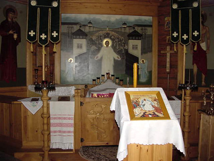Russian Orthodox Chapel at Dachau![]() ![]() A small Russian Orthodox Chapel, named "Resurrection of our Lord," is located just to the left of the tourist entrance into the crematoria area at the Dachau Memorial Site. It was built by members of the Russian armed forces and was dedicated on April 29, 1995, the 50ieth anniversary of the liberation of the Dachau concentration camp by American troops. The chapel is set upon a mound that has some soil that was brought from the former Soviet Union. The photo below was taken inside the chapel. It shows a painting of the resurrected Christ leading the camp inmates out of their barracks and through the gate that is held open by angels. ![]() Two other icons inside the chapel show Jesus in the Garden of Gethsemane and Pilate presenting him to the people with the words "Ecce homo." Although the chapel is too small to have seats for visitors, it is used both for private prayer and regularly scheduled religious services. The Chapel was built in honor of an estimated 6,000 Russian Prisoners of War who allegedly died in the Dachau camp or were executed at the SS firing range at Herbertshausen. Ninety Russian POWs, who were believed to be Communist Commissars, were hanged at Dachau, on an order from Adolf Hitler who issued this directive on the eve of the German invasion of Russia on July 22, 1941. In all the camps, the Russian POWs were treated much worse than other prisoners in retaliation for the atrocities committed by the Russians against German soldiers. The Russians had not signed the Geneva Convention of 1929, and were not following the rules of warfare with regard to German Prisoners of War. After the liberation of Dachau, the remaining Russian POWs were turned over to the Soviet Union in accordance with the Allied agreement at Yalta in 1943. The Soviet Union treated these returning prisoners as traitors and immediately sent them to the gulags, as the Communist concentration camps were called. ![]() Protestant Church of ReconciliationMore Information - External LinkBack to Memorial SiteBack to Table of ContentsHomeThis page was last updated on August 6, 2009 |