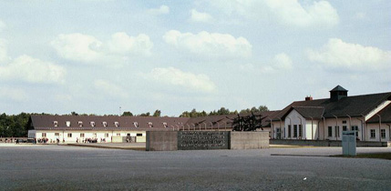 Shown here is the entire International Monument with its two memorial walls on either side, and the Nandor Glid sculpture in the center.