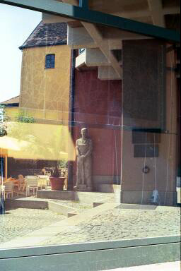 a veranda with yellow umbrellas shading the tables of the Zieglerbräu