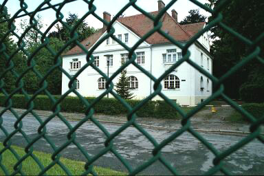 The Avenue of the SS"Nearly a thousand yards from the rail siding, was the Camp itself . The approach was a wide, two-lane road with a lawn down the middle. One could imagine from the impressive massiveness of the gray (sic) Administration Buildings and Barracks, the fine lawns, great walls and black iron-grilled gates, that you were approaching a wealthy girls finishing school in the suburbs of one of our great cities. All was so neat, so orderly, so beautiful." Lt. Col. Walter J. (Mickey) Fellenz, Commanding Officer, 1st Battalion, 222nd Regiment in a report to the Commanding General of the 42nd Division of the US Seventh Army, 6 May 1945, describing the Avenue of the SS leading to the SS-Übungslager. ![]() In the aerial photograph above, the Dachau concentration camp is the rectangular area in the center on the right-hand side. One can easily recognize the two rows of barracks buildings with dark roofs and the U-shaped administration building with the roll call rectangle in front of it. The SS Training Center and army garrison is on the left. From the left-hand corner of the bottom of the photograph, a street runs past 8 large white houses toward Eicke Plaza, which is the small rectangle to the left of the southwest corner of concentration camp. The 8 houses were built before 1920 and are still standing. These beautiful red-roofed houses face the street that was called the Avenue of the SS when the camp was in operation. On April 29, 1945, the 42nd Rainbow division of the US Seventh Army approached the Dachau concentration camp from the southwest. In order to get to the prison compound itself, they first had to go through the SS training camp. The main entrance to the SS camp was on a street called The Avenue of the SS, facing a formal plaza called Eicke Plaza. The Americans were astounded to see this beautiful street, as described by one of the liberators in his report, quoted above. When the Dachau concentration camp first opened on March 22, 1933, the prisoners were housed in the existing buildings of the Dachau Royal Gunpowder and Munitions Factory, which had been built in 1915 while World War I was in progress. The former munitions factory was a huge place and the prison compound covered only one fifth of the grounds, or an area of about five acres. In June 1936, when the Nazis decided to rebuild the concentration camp on the same site, they also made the decision to enlarge the SS training camp and garrison that had been established on the factory grounds. On July 2, 1936, the Bavarian Ministry of Finance turned over the entire factory grounds, which was state property, to the Nazis and they began construction on an enlarged SS camp with the use of prison labor. The SS camp was to be four times the size of the concentration camp, and some of the existing buildings of the former factory would be used. By 1938, the SS camp was like a small town with stores, a movie theater, a post office, restaurants, a community center, a triangular-shaped swimming pool, and an enormous area of barracks for the thousands of soldiers who were stationed there. There was also a military hospital for SS soldiers. On the day that the Dachau concentration camp was liberated, Brig. Gen. Henning Linden, Assistant Division Commander of the 42nd Rainbow Division, rode down the Avenue of the SS in his jeep as he went to meet SS 2nd Lt. Heinrich Wicker who had been persuaded by the Red Cross to surrender the concentration camp at the main gate of the complex, which faced the Eicke Plaza on the Avenue of the SS, just east of the 8 houses. The photograph below shows a group of SS soldiers surrendering to American troops at the main gate into the SS complex. This photo was taken by Raphaël Algoet, a photographer sent by the Belgian government. ![]() The next photographs below show 3 of the 8 SS buildings on the Avenue of the SS, which are still standing. The area is now fenced off and visitors are not allowed access. These houses were used by the SS when the training camp and garrison was in operation, up until 1945. The Avenue of the SS has been renamed Strasse der KZ-Opfer, which means Street of the Concentration Camp Victims. ![]() ![]() ![]() After the Dachau complex was liberated by the US Seventh Army on April 29, 1945, many of the SS soldiers were incarcerated in the prison compound that was formerly the concentration camp. American soldiers moved into the beautiful buildings in the SS-Übungslager and remained there for the next 28 years. The SS training camp was renamed the Eastman Barracks, and American soldiers were stationed here until 1973. The army garrison was then turned over to the Bavarian government and many of the buildings were torn down between 1978 and 1984. Gates into Dachau complexPreserved railroad tracksHistory of the SSBack to SS CampBack to Table of ContentsHome |