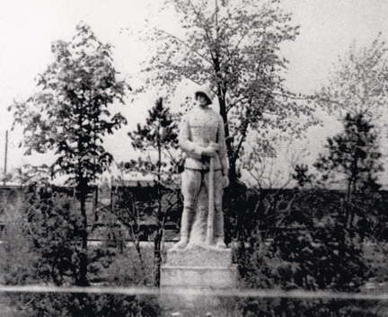 Section of preserved railroad trackOne of the mass transports of prisoners which made use of the siding included 120 beggars and tramps. These people arrived at Dachau station at 4:30 p.m. on July 15, 1936. The Bavarian Secret Police informed the camp commandant, SS-Oberführer Hans Loritz, in advance that these 120 people "are to be transported directly from Dachau station in 3 rail cars via the industrial siding to Dachau concentration camp." Hans-Günter Richardi, Dachau: A Guide to its Contemporary History ![]() A short railroad branch line, or rail siding, was built in 1915 from the train station in Dachau to the gunpowder and munitions factory. In July 1936 when the Nazis acquired all the property of the abandoned gun powder factory, construction began on an SS training camp and garrison, which was built next to the concentration camp that had opened in 1933. On September 23, 1936 the industrial railroad branch line, that had formerly served the munitions factory, became the property of the Nazis. It was used primarily to bring supplies into the SS camp, but a few transport trains carrying prisoners also arrived on this railroad line, which went a short distance inside the SS camp through a railroad gate on the southwest side of the complex. The railroad tracks did not extend into the concentration camp. ![]() A short piece of the track on this branch line has been preserved as a memorial to the prisoners who entered the Dachau complex by train. The rest of the branch line was ripped out in 1985. The English translation of the sign reads "Railroad track to the former SS camp where between 1933 and 1945 tens of thousands of prisoners were transported into the concentration camp." To find this preserved section of the track, go to John F. Kennedy Plaza which is on the north side of Sudetenlandstrasse, near where it intersects with Friedenstrasse. A sculpture from the Dachau '95 exhibit, shown in the photograph below, marks the John F. Kennedy Plaza; the sculpture faces Sudetenlandstrasse and is directly across from a bus stop for bus #720 coming from old town Dachau. To reach this spot, I got on bus #720 in front of the Zieglerbräu Hotel on Konrad-Adenauer-Strasse, one of the main streets in old town Dachau, and got off on Sudetenlandstrasse, just past the intersection with Friedenstrasse. ![]() As you face the sculpture shown above, keep walking straight ahead (north) through the plaza until you see a street that runs along the western fence of the former SS camp. The street goes past some nice new houses, and ends at the entrance to the Dachau Volunteer Fire Department where you will see a sign marking the preserved section of the train tracks. Surprisingly, the memorial sign does not mention the "death train" which arrived after a 220-mile trip from Buchenwald and was abandoned on these very tracks on April 27th, two days before the American Seventh Army liberated the camp. The ill-fated journey had taken three weeks because of delays caused by American bombing and many of the prisoners had been killed by American planes strafing the open cars on the train. It was the sight of the corpses on this train that enraged the American soldiers of the 45th Infantry Division to the point that they lined up Waffen-SS soldiers from the Training Camp and garrison, who had just surrendered, and mowed them down with a machine gun. The photograph below, taken in May 1945, shows a memorial to the German soldiers of World War I and in the background is the train from Buchenwald with its cargo of bodies of prisoners who died before the train arrived in Dachau. The abandoned train was 39 cars long and part of it was on the tracks near what is now John F. Kennedy Plaza. ![]() From John F. Kennedy Plaza, take the street which curves around from the plaza to the east, and you will be on the street formerly called the Avenue of the SS. The name of the street is now Strasse der KZ-Opfer. Avenue of the SSGates into Dachau complexHistory of the SSBack to SS CampBack to Table of ContentsHome |