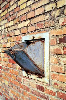 "Shute" on outside wall of Dachau gas chamber