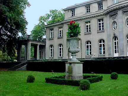 Total over 11,000,000 The "Eastern Territories," which had a total of 420,000 Jews, were in the part of Poland that had been taken over by the Soviet Union in 1939, but were now in the control of the Nazis, following the invasion of the Soviet Union on June 22, 1941. The Ukraine and White Russia (Belorussia) were formerly a part of the USSR (Soviet Union) so the 2,994,684 Jews in the Ukraine and the 446,000 in White Russia were included in the 5 million Jews in the USSR. Many of these Jews had been moved into the interior of Russia, when the Soviet Union was invaded. It was Hitler's custom to have his personal secretary take down his words verbatim when he gave his long-winded monologues to his inner circle at the dinner table, or in the drawing room, in the evening. According to historian John Toland , Hitler made the following comment, which was written down by his secretary, during his "table conversations" in the fall of 1941: From the rostrum of the Reichstag, I prophesied to Jewry that, in the event of war's proving inevitable, the Jew would disappear from Europe. That race of criminals has on its conscience the two million dead of the First World War, and now already hundreds and thousands more. Let nobody tell me that all the same we can't park them in the marshy parts of Russia! Who's worrying about our troops? It's not a bad idea, by the way, that public rumor attributes to us a plan to exterminate the Jews. Terror is a salutary thing. The map below shows the Greater German Reich in orange and the area of Poland that was annexed into the Greater German Reich in a darker orange color. The yellow line shows the boundary of Poland between 1919 and 1939; during this period of time, Germany was divided into two sections by the Polish Corridor. The tan colored area within the yellow boundary line designates the part of Poland that was occupied by the Soviet Union after the defeat of Poland by the Germans and the Soviets in 1939; this is what was referred to as "the Eastern territories" in the minutes of the Wannsee conference. Shown in dark brown on the map is the General Government, where 2,284,000 Jews lived; this area was German-occupied Poland. In the tan colored area is the "Reichskommissariat Ukraine" where 2,994,684 Jews lived. The area called "German Military Administration" on the map is the part of Russia that was within the control of Germany by January 1942. ![]() The evacuation of the Jews in the Warsaw and Lublin ghettos to the death camps at Treblinka, Sobibor and Belzec, began in February 1942, soon after the Wannsee conference. This first "evacuation to the East" was named Aktion Reinhard in honor of Reinhard Heydrich, although some sources say that the operation was named Aktion Reinhardt in honor of Staatssekretär Fritz Reinhardt, the civil servant in the Reich Finance Ministry, who was in charge of exploiting the assets of the Jews who were murdered in these camps. Note that Treblinka, Sobibor and Belzec are all located close to the Bug river, which formed the border between German-occupied Poland and the area of Poland that was formerly occupied by the Soviet Union. Some visitors to the Wannsee house might be upset to see that the Nazis chose such a lovely, serene setting for a conference devoted to planning the world's greatest crime, but it was typical for the Nazis to surround themselves with beautiful scenery, classic buildings, music and books. Some of the most notorious Nazi concentration camps were built in beautiful locations and had such incongruous features as flower gardens, bird houses, orchestras, a library, a zoo, and a swimming pool. Reinhard Heydrich, who chose this spot for the conference, was an aristocratic and cultured man, an athlete and a talented musician. Most of the participants were educated men and several had law degrees. The photograph below shows the back of the Wannsee house, which overlooks a large lake named Grossen Wannsee. To the left in the picture is a covered terrace with French doors leading to the Wintergarten, a sun room which looks out on a small formal rose garden on the south side of the house. The two ground floor windows to the left of the flower-filled urn are the windows of the former dining room where the infamous conference was held. According to the museum at Wannsee, Reinhard Heydrich requested the job of coordinating the "General Solution of the Jewish Question." The Jewish Question had been discussed in Europe for at least a hundred years. Karl Marx, the originator of Communism and a non-practicing Jew himself, had even written a paper on the subject. The question was whether the Jews should give up their separate identity and become assimilated into the country in which they lived, or whether they should have their own separate nation within a nation. The Final Solution to the Jewish Question, which was the subject of this Conference, was to be the "transportation to the east" or "evacuation to the east" (nach dem Osten abgeshoben) of the Jews in Europe. In the minutes of the meeting, nothing is written about killing the Jews, but the innocuous words used in this document are now regarded by Holocaust historians as euphemisms for the extermination, or genocide, of the European Jews. By late 1941, the Nazi empire extended from the Arctic Circle to the Sahara Desert and from the Pyrenees mountain range to the Ural mountain range. The Germans controlled most of Western Europe and in Eastern Europe, they had conquered all of Poland, the Ukraine, White Russia, and the three Baltic states: Latvia, Estonia, and Lithuania. Most importantly, they were in control of territory a thousand kilometers into Russia and they were on the verge of defeating the Soviet Union. Hitler had formed the Greater German Reich, starting with the annexation of Austria and the Sudetenland in what is now the Czech Republic in 1938, Silesia in Poland in 1939, and Luxembourg, along with the provinces of Alsace and Lorraine in France, in 1940