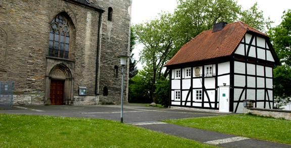 Convent school in Geseke, Germany![]() ![]() ![]() The Convent school, shown in the photos above, was established in honor of the Blessed Virgin Mary and St. Cyriakus for noble-born ladies on land donated by the Hahold family in the year 946 AD. This was only a few years after the town of Geseke first came into existence when Holy Roman Emperor Ludwig the Pious gave 5 farms to Count Riedag in the location of present-day Geseke, according to a guidebook which I purchased in Geseke. In 952, King Otto placed the convent under his protection and gave it sacrosanct status. In 986, the St. Cyriakus church was built next to the Convent school. The present church of St. Cyriakus, shown in the photo at the top of the page, was built at a later time at the same location. In 1014, the convent in Geseke was placed under the Control of the Archbishopric of Cologne. In 1180, the Emperor Friedrich Barbarossa transferred the Duchy of Westphalia, to which the town of Geseke belonged, to the Archbishop of Cologne, when Henry the Lion, the Duke of Saxony, fell into disgrace. Geseke became the most important border town in the east in the defense of Cologne against the Bishopric of Paderborn. As a border town, Geseke was exposed to constant unrest, looting and attack, according to the Geseke guidebook. This is why Geseke became a fortified town in 1217. A wall that was 3 kilometers long was built around the town and the farmers from the villages in the area left their farms to live within the town walls. The wall was torn down in 1830. Back to Church indexHomeThis page was created on July 21, 2008 |
