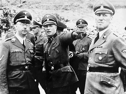 Mauthausen Staff Members![]() The last Commandant of Mauthausen, Franz Ziereis, is shown in the center of the photo above. Ziereis was sent from the Buchenwald camp to Mauthausen on February 9, 1939, to replace the previous Commandant, Albert Sauer. On August 25, 1939, Ziereis was promoted to SS-Sturmbannführer (SS major), and on April 20, 1944, as a reward for "special achievements" as camp commandant, he was promoted to the rank of SS-Standartenführer (SS colonel). Ernst Kaltenbrunner, the man on the right in the photo, had the ultimate authority over the concentration camp system. He was tried as a war criminal at the Nuremberg International Military Tribunal and was hanged. Himmler was captured by the British after the war and allegedly committed suicide. ![]() In the photograph above, the third man from the left is Franz Ziereis, the Commandant of Mauthausen. On the far left is Hauptsturmführer Erich Wasicky, the camp apothecary or chemist; the man on his right is Sturmbannführer Eduard Krebsbach, the camp doctor until June 1943. Wasicky and Krebsbach were both tried by an American Military Tribunal at the former Dachau concentration camp; both were found guilty of participating in a common plan to commit war crimes and both were hanged in 1947 at the Landsberg am Lech prison in Bavaria. Wasicky was scheduled to be hanged on May 27, 1947, which was his birthday. He requested that his execution be delayed until the next day, May 28, 1947, and his wish was granted. Wasicky was a talented artist, as were many of the accused SS men, and he was allowed to draw cartoons about the camp while he was in prison, awaiting his execution. Commandant Franz Ziereis was never brought before a Military Tribunal. He died at the Mauthausen camp, where he was brought after he was "shot while attempting to escape." In a movie shown at the Mauthausen Memorial Site in May 2003, a former prisoner who worked for Ziereis in the camp described him as being "nice to his wife" when she visited him in the camp, but at the same time, he would order the murder of prisoners. In his book "The Redemption of the Unwanted," Abram L. Sachar paints a picture of Ziereis as a monster, although he also says that the prisoners had dubbed him "Baby Face." Quoted below is an excerpt from page 16 of "The Redemption of the Unwanted," written by Abram L. Sachar: He (Ziereis) always appeared immaculately uniformed and bemedaled. Since Himmler had taken him from a mental asylum, Ziereis imitated his mentor by drawing the members of his personal staff from among vicious criminals. He conducted seminars to refine techniques in brutality and never denied that he shared in the satisfactions of maltreating the prisoners. He confessed to the charge that book covers and screens had been made from the skins of the camp victims, but claimed that this was the work of two of his demented fellow officers. To Ziereis it was apparently entertaining to have the kitchen staff overturn pots of watery soup so that the starved creatures who shambled up for their "meal' would be forced to lick the spillage before it was absorbed into the filthy floor. He had the SS brothels secretly equipped with motion picture cameras, to monitor the possibility that messages might be passed during coitus. In his confessions, he noted that he gave fifty Jews for target practice as a birthday present to his son. Ziereis did not mention the fifty Jews that he gave to his son for target practice in the confession, which he allegedly gave to Hans Marsalek, a prisoner at Mauthausen, as he lay dying of gunshot wounds on the night of May 22 and May 23, 1945. ![]() Karl Chielewski, shown on the far right in the first row, became the first Commandant of the Gusen camp in March 1940. He was relieved of his duties in 1943. The second in command at Mauthausen was Hauptsturmführer Xavier Strauss, an adjutant who was the commander in chief of the garrison and administrator general of the camp, according to Christian Bernadac, a French journalist who wrote a book entitled "The 186 Steps." Other top officials in the camp were Hauptsturmführer Zoller and Obersturmführer Adolf Zutter. Both Zoller and Zutter were convicted by an American Military Tribunal and hanged. The confession of Franz ZiereisHomeThis page was last updated on July 13, 2011 |